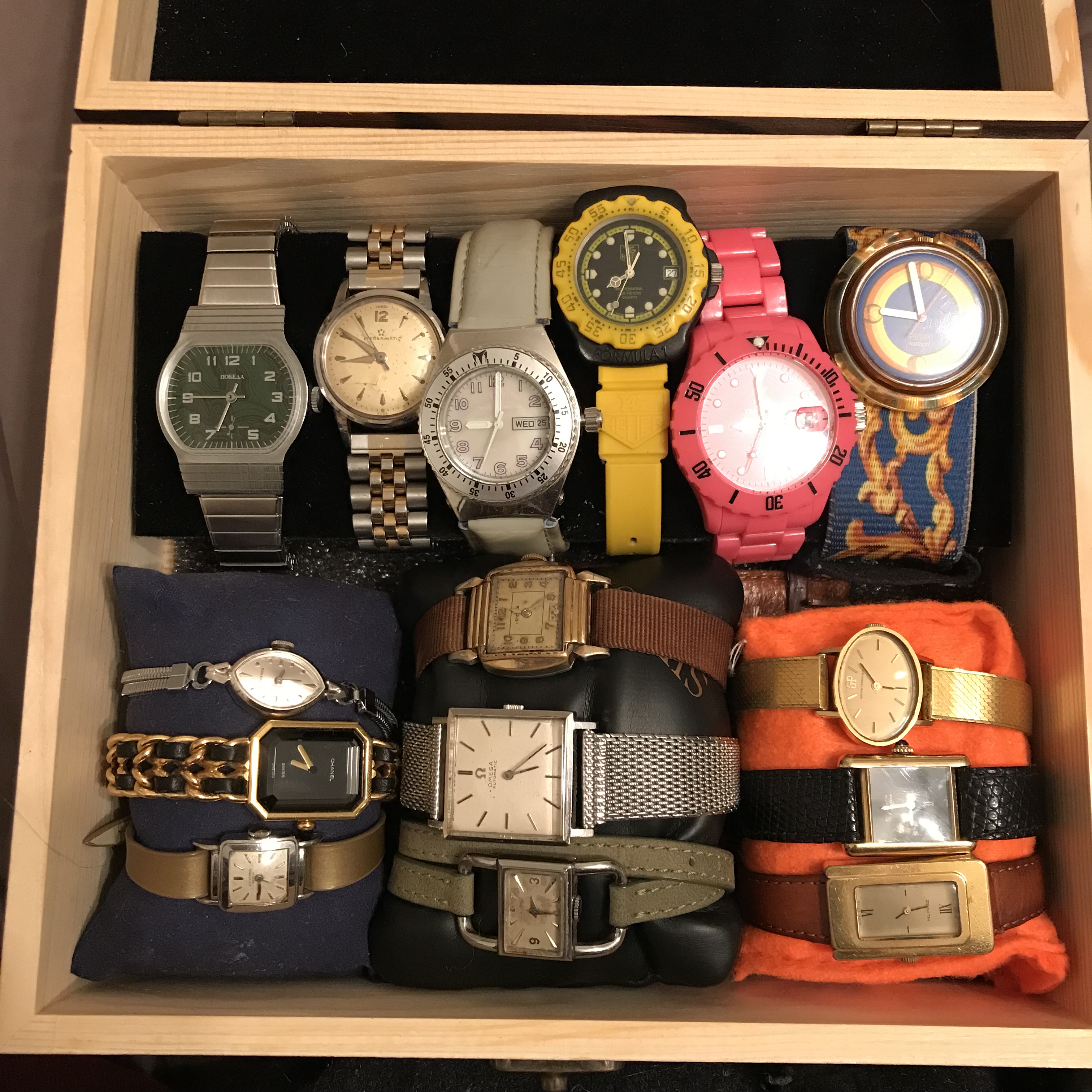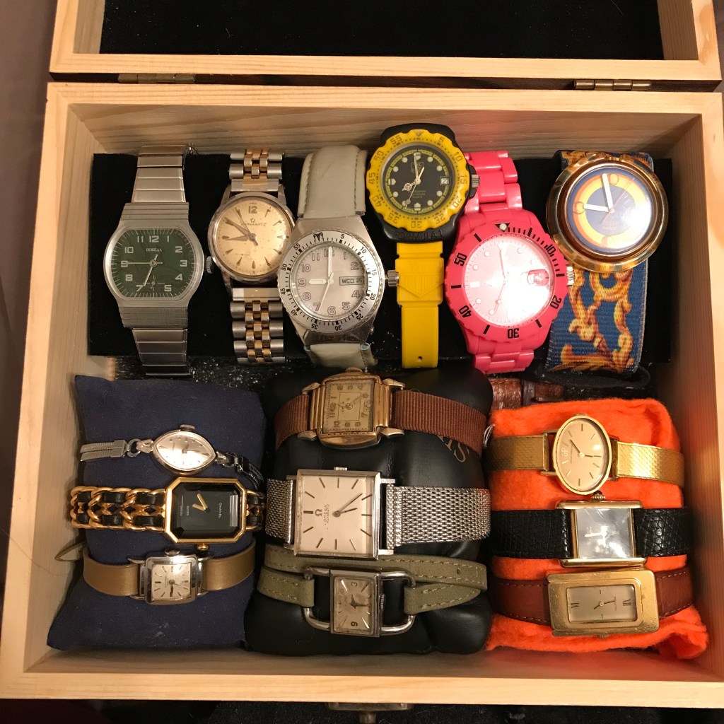 One of my goals during the holiday break is to rationalize my various collections so that my house is tidier and I so that I’m not constantly loosing things. Luckily Seiko sent a gift of whiskey glasses in a big ol’ box that I have converted into a watch house (unfortunately the tumblers shattered in transit).