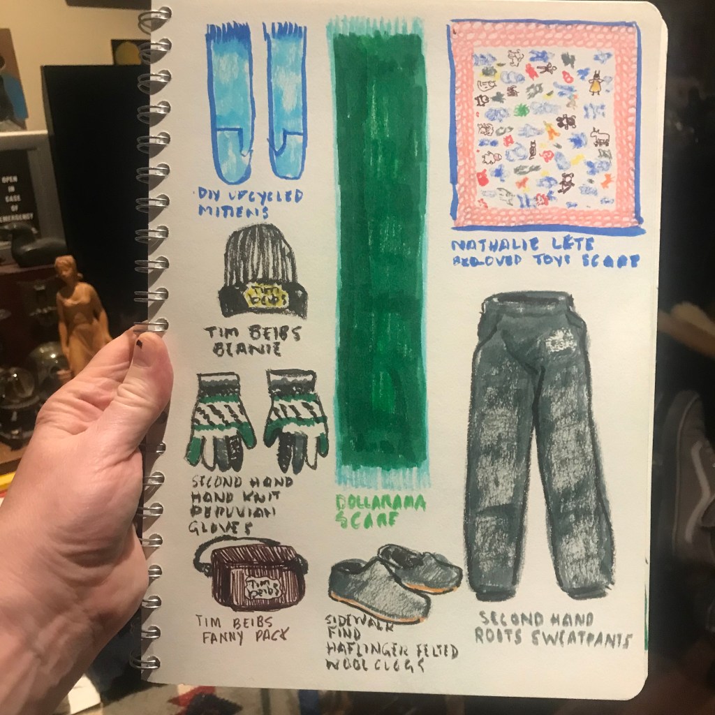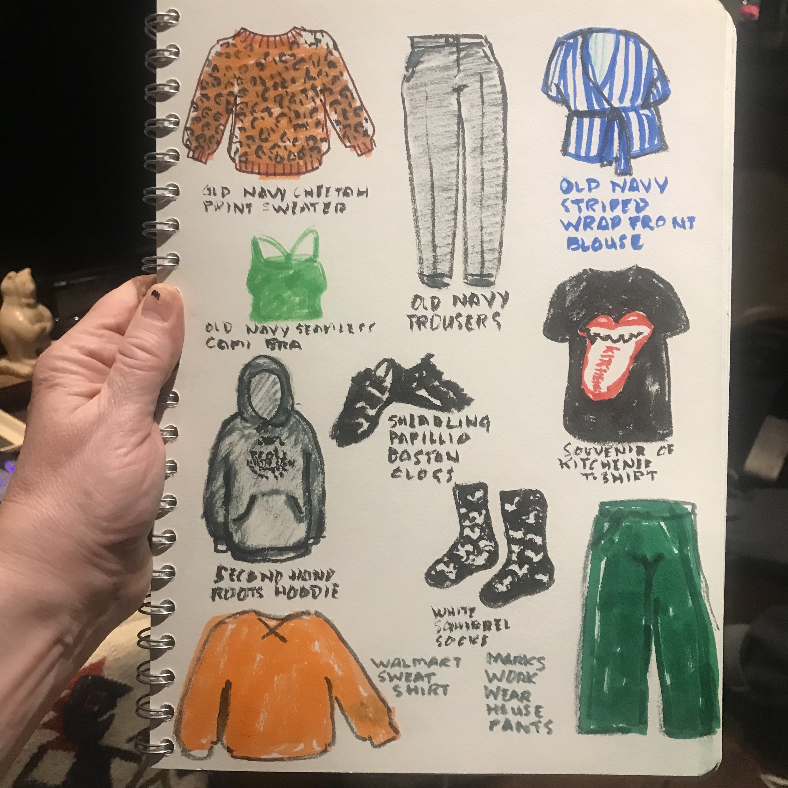 I had time left (and I was having fun) so I continued to draw by resurrecting my ”Pandemic Purchases” series. As you may recall, last year I set out to sketch every article of clothing that I obtained since March 2020.