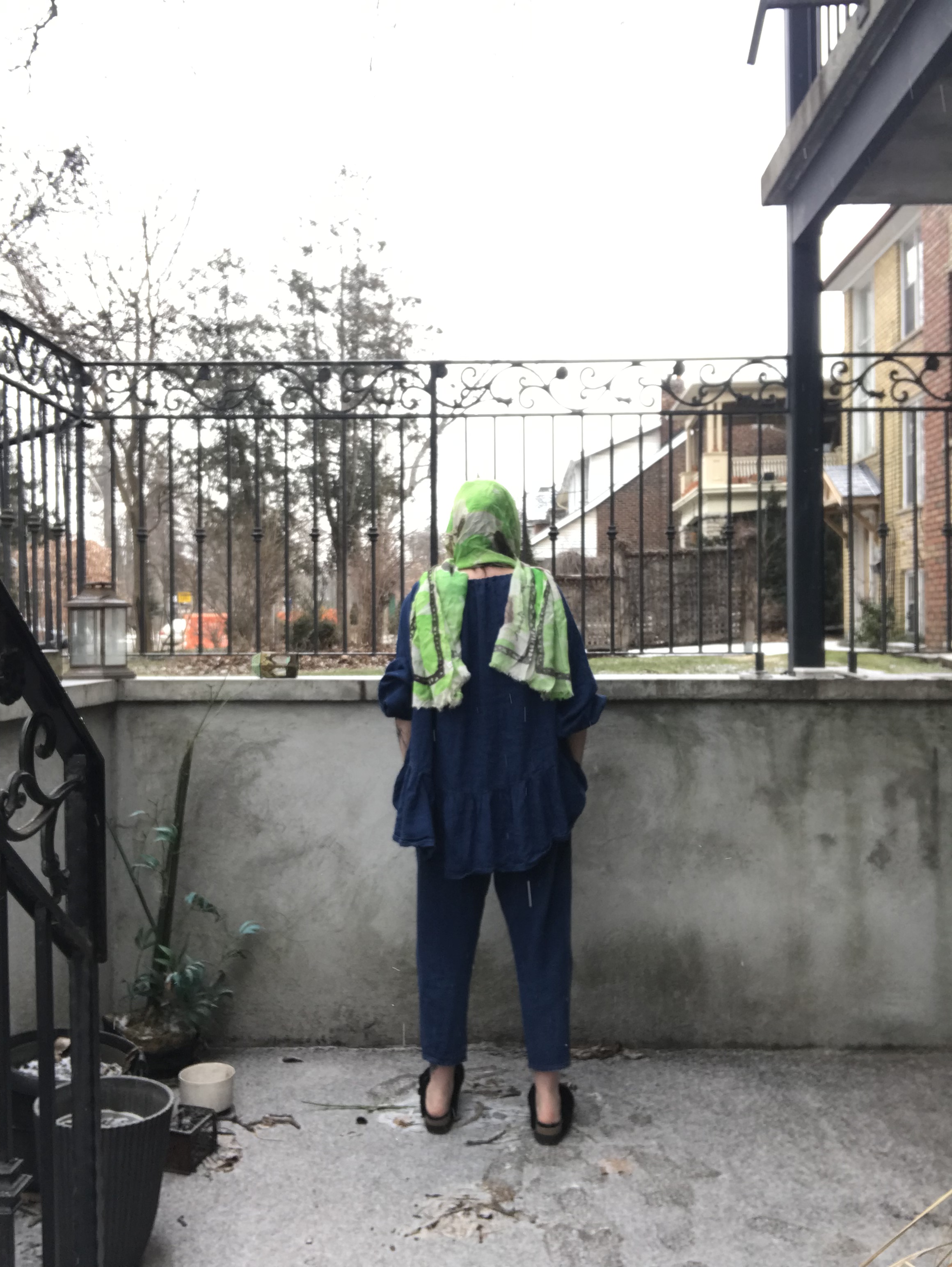The neck line still needs work (I’m gonna go buy some elastic at the Dollarama later this week) but for now the scarf and jacket combo hides the droopiness.