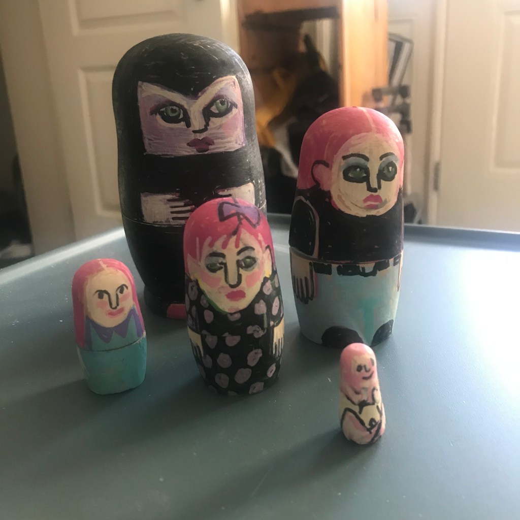 But on the weekend I was struck by a small lightening bolt of inspiration. Since a lot of the things I make are about Transformation, why not use a Russian Nesting Doll to document my own style evolution? Here is the result.