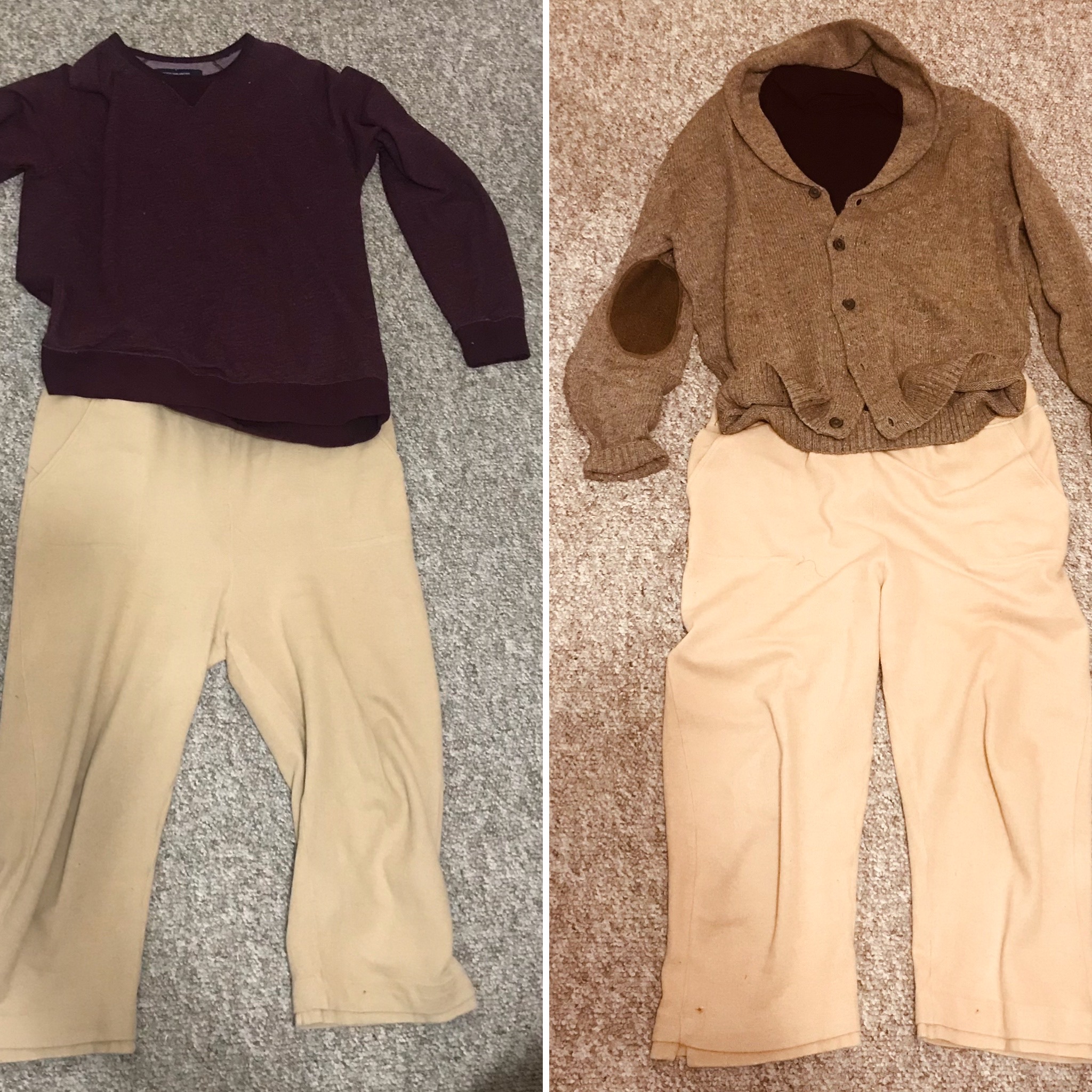 And because I packed only pajamas for my weekend away, I bought some clothes: a pair of Tanjay old lady pants; an American Eagle sweatshirt; a William Rast t-shirt (remember when Justin Timberlake was trying to be a fashion design and was positioning William Rast as his The Row?); and Haggar shawl neck cardigan. It all worked together somehow.