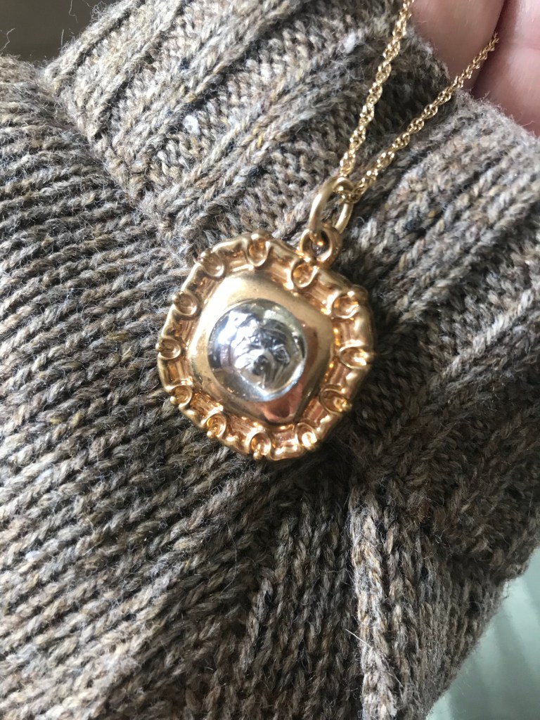 The greatest treasure is this Essex Crystal that I found whilst going on a mini thrift safari with my sister on Sunday. These novelties were made from a quartz Crystal that had been polished into a cabochon. The artist would then carve the image of an animal or flower into the reverse and then paint the etching for a 3D effect, They went out of style after manufacturers figured out out to cheaply approximate the effect with plastic or moulded glass. Also called reverse carved crystals, they were popular in the late Victorian through to the Edwardian eras. I have seen the knock offs but this is the first one I’ve found.