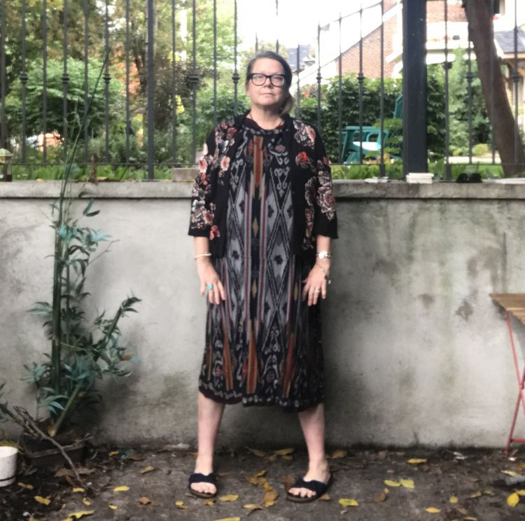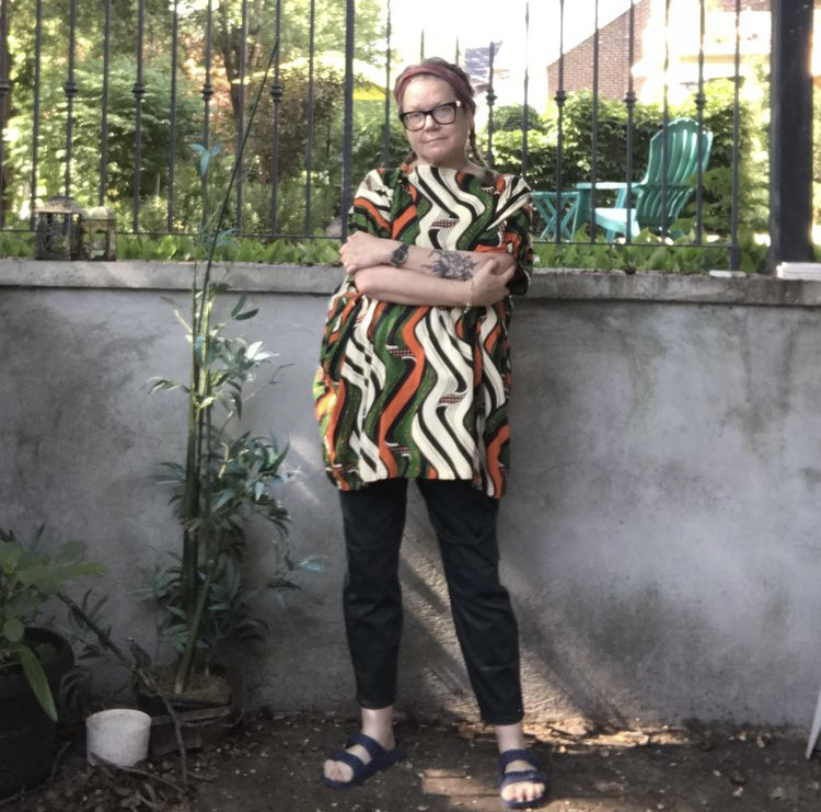 This tunic was crafted from some thrifted old Dutch Wax yardage. I am somewhat obsessed with what is called zero waste patterns—clothes that don’t require any off cuts.