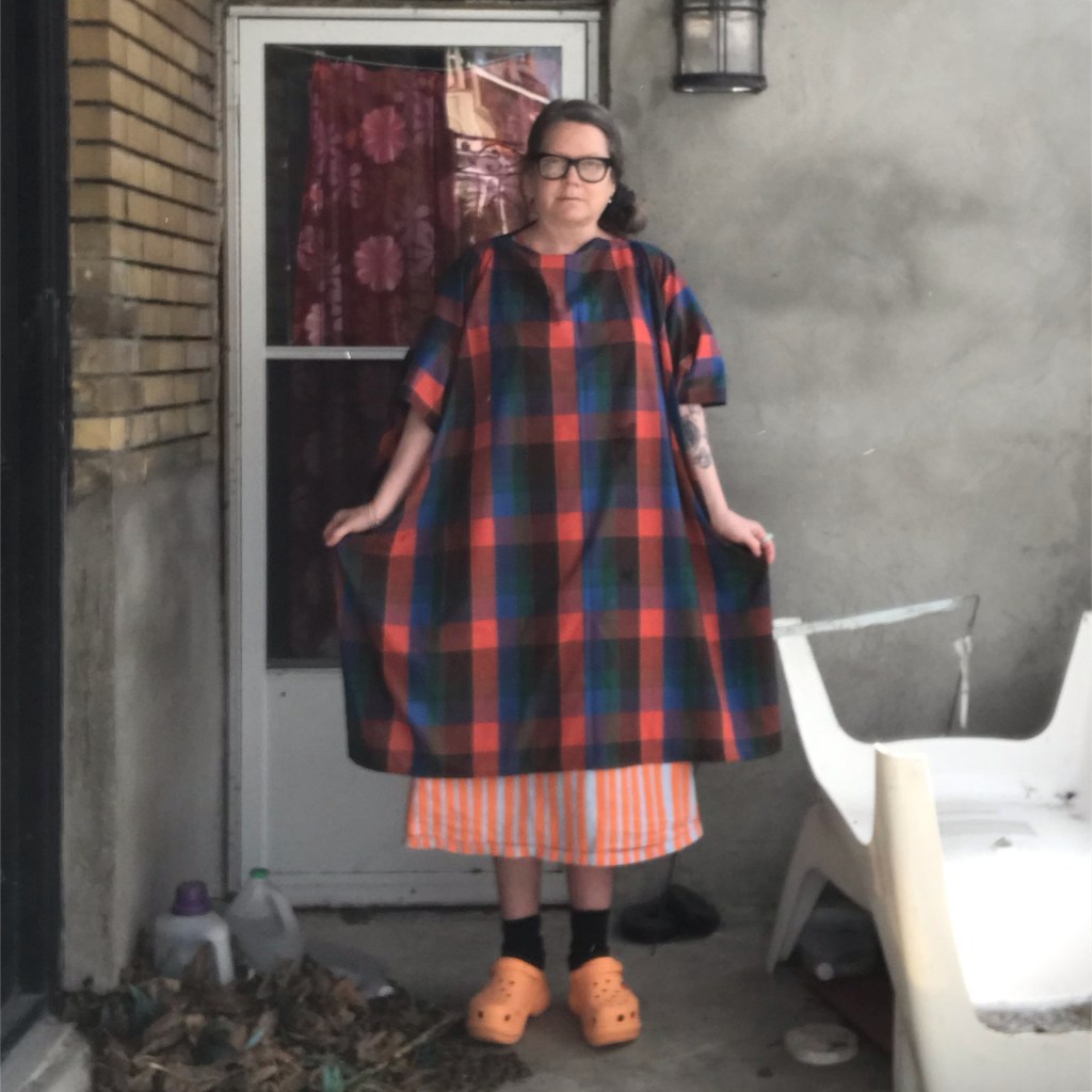 I went to the Value Village to buy some thread on Friday and I spotted some madras fabric so I bought that too. Then I stayed up all night making a new frock.