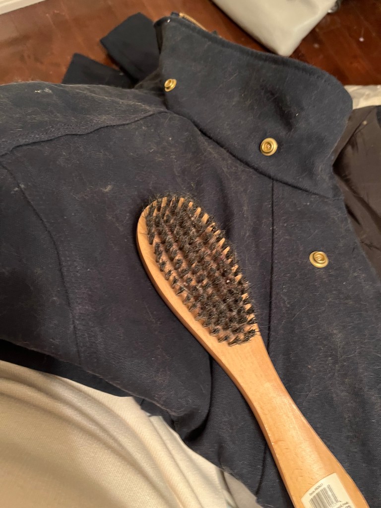 Speaking of prevention, don’t let your cat use your heavy-duty winter coat as a bed for a month before you put it away. Removing all the cat hair and drool took an hour. I used my handy dandy fabric brush to help loosed the lint but still needed a half-roll of packing tape to lift off all the offending fur.