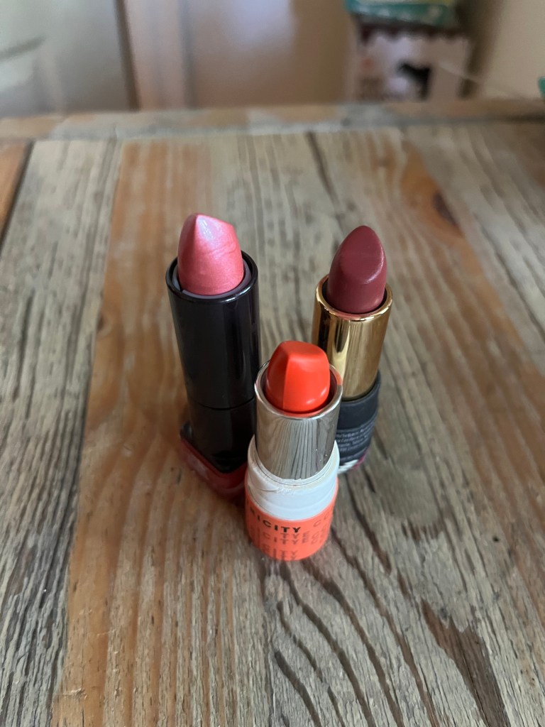Reviewing the last two years of selfies is also a record of how my physical appearance has changed. My face, in particular, looks a little washed out. I already wrote about buying a Cheekbone Beauty makeup palette, eye liner and lipstick. And I still love these purchases — the lipstick in particular goes on smoothly and doesn’t dry out my lips. A triple plus.That makeup success gave me the confidence to purchase more lip colour. To both honour and stereotype my Scottish roots I cheaped out bought two more lipsticks from the Shoppetd Drugmart. Here’s are my mini reviews.