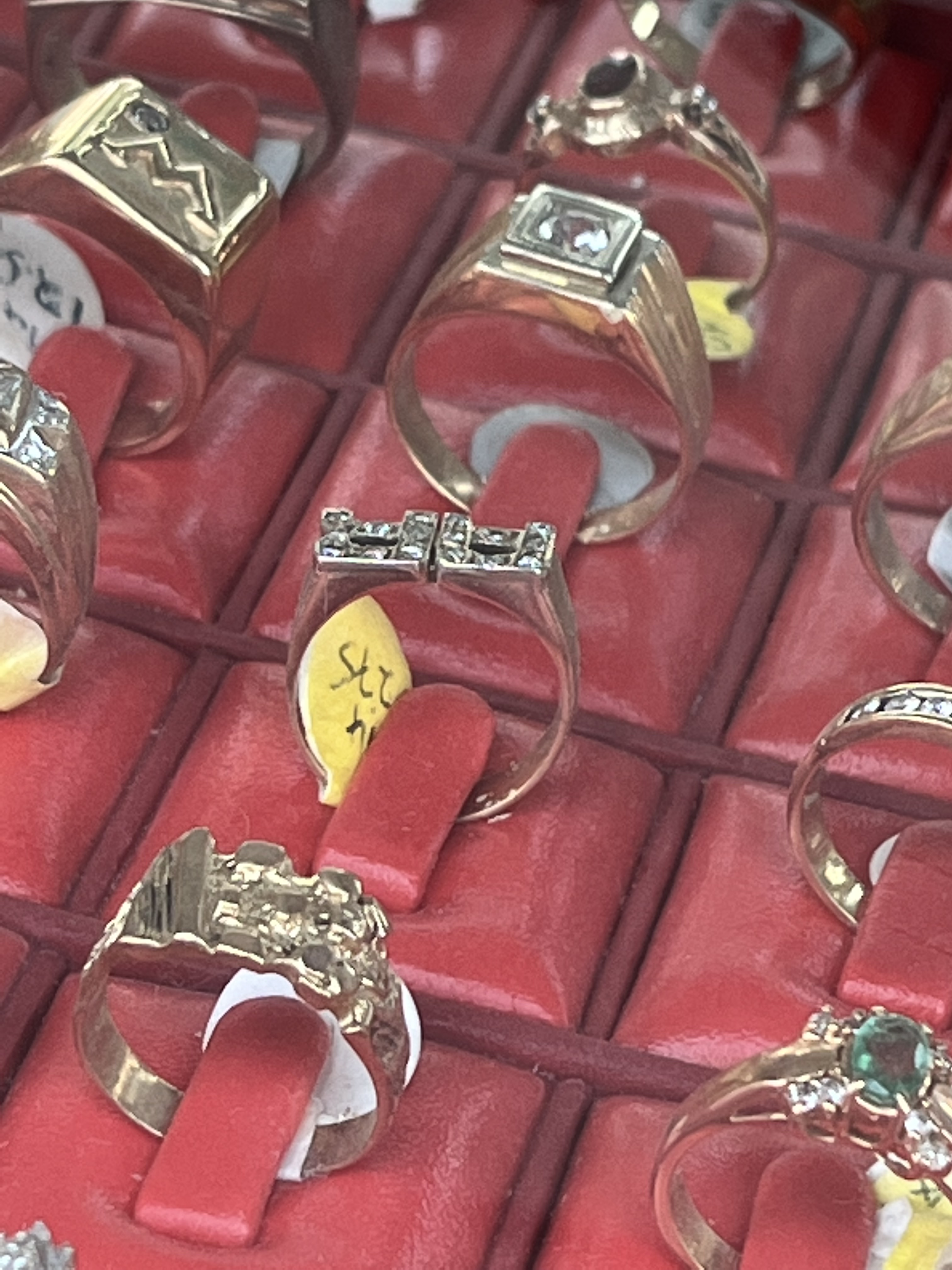 I was also bewitches by this diamond studded initial ring because I thought this monogram read ”RR” but on inspection I realize it was an A and an R. So no purchase for me.