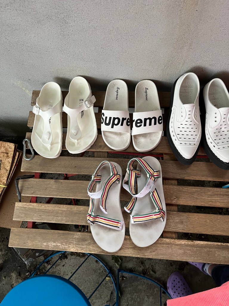 I’ve been traveling for work so I’m exhausted. I also have a zillion deadlines and end-of-the-month administrative business to attend to. So what am I doing instead of sleeping or working? Cleaning my shoes and organizing my bucket hats, of course.