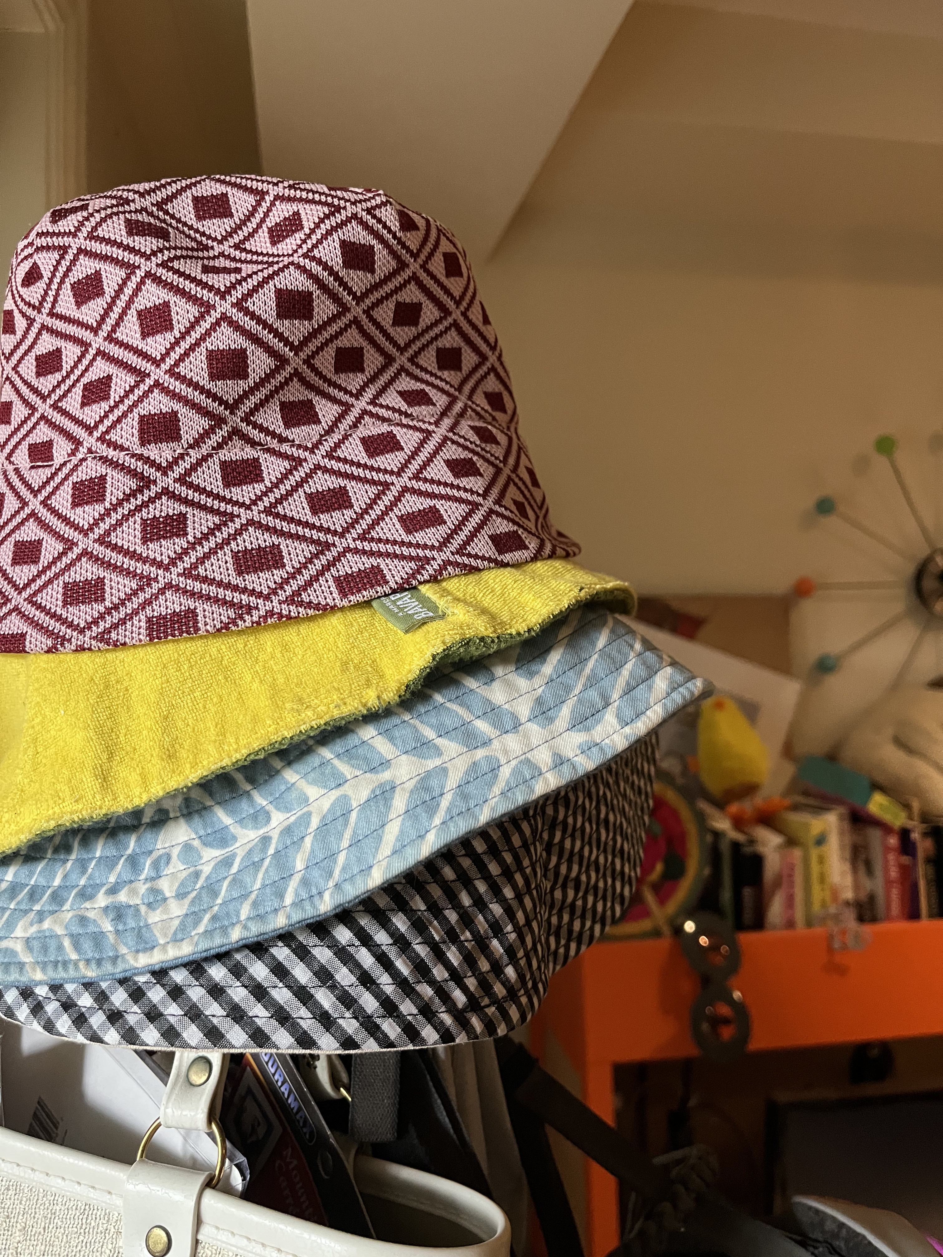 I’ve been traveling for work so I’m exhausted. I also have a zillion deadlines and end-of-the-month administrative business to attend to. So what am I doing instead of sleeping or working? Cleaning my shoes and organizing my bucket hats, of course.