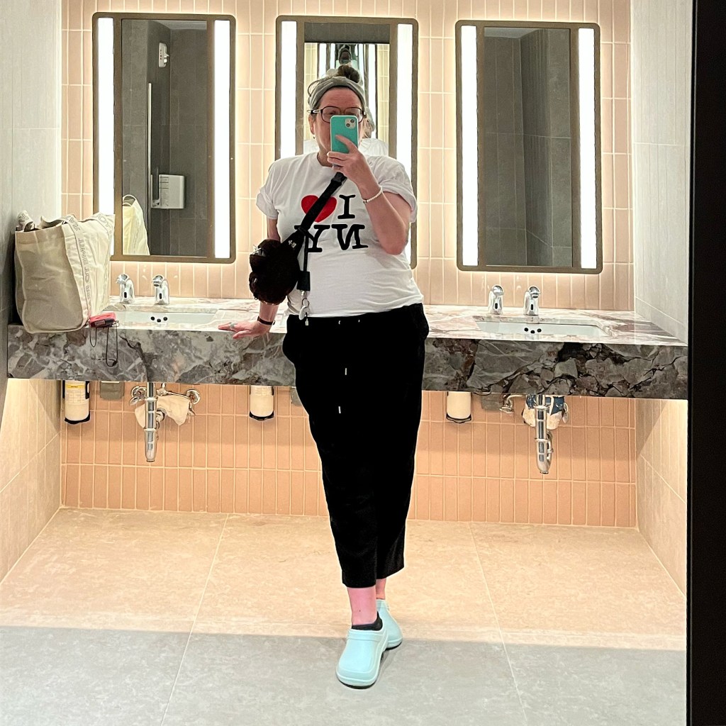 Up top: An I Love New York t-shirt that I bought on a recent trip to Nanhattan because I sweated through everything I packed and I needed something clean to wear on the plane.