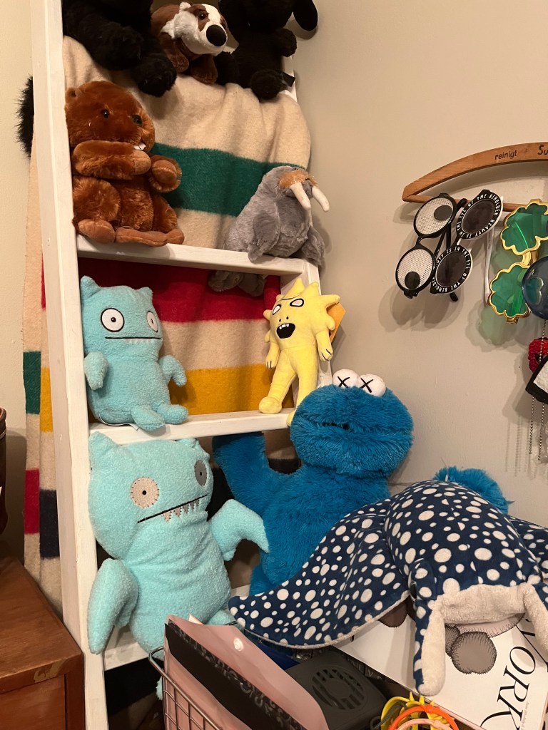 While I got a few little Ugly Doll figurines when they were part of a McDonald’s Happy Meal promotion, almost all of my collection was obtained from Dollarama. There seems to be a direct overstock pipeline of these critters that leads directly to the discounter. These dolls have their own weird timeline. For example, the orange clip on bat I got over two years ago. The blue one was purchased two days ago. Same-ish time gap between the small blue “ice bat” plushie and the larger one.
