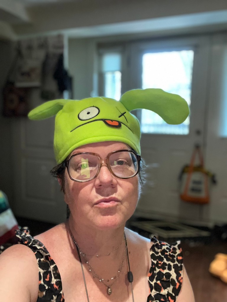 The best/most foolish Ugly Dolls accoutrement is this hat I picked up last week. It’s a rabbit not a bat but believe me I’ll be trawling the dollar stores for the rest of my life hoping to score a bat cap,
