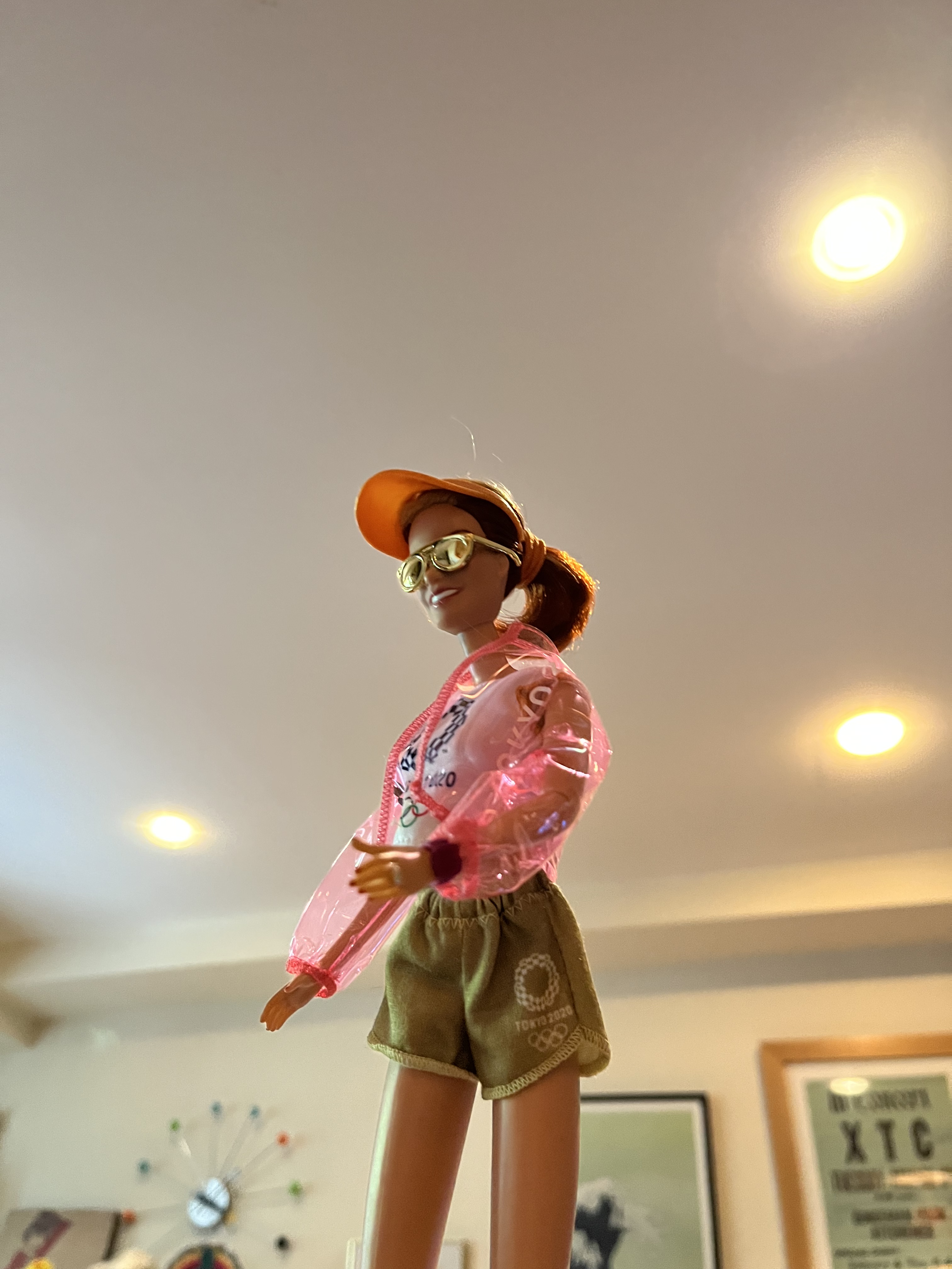 Anyway, I put the dolls away for a bunch of months. While I was visiting Dollarama this week, I saw that they were selling Barbie clothes. I picked up two Tokyo 2020 Olympics sets to dress Ginger Spice (who was naked when I found her). I also redressed Ashley with a new polka dot skirt.
