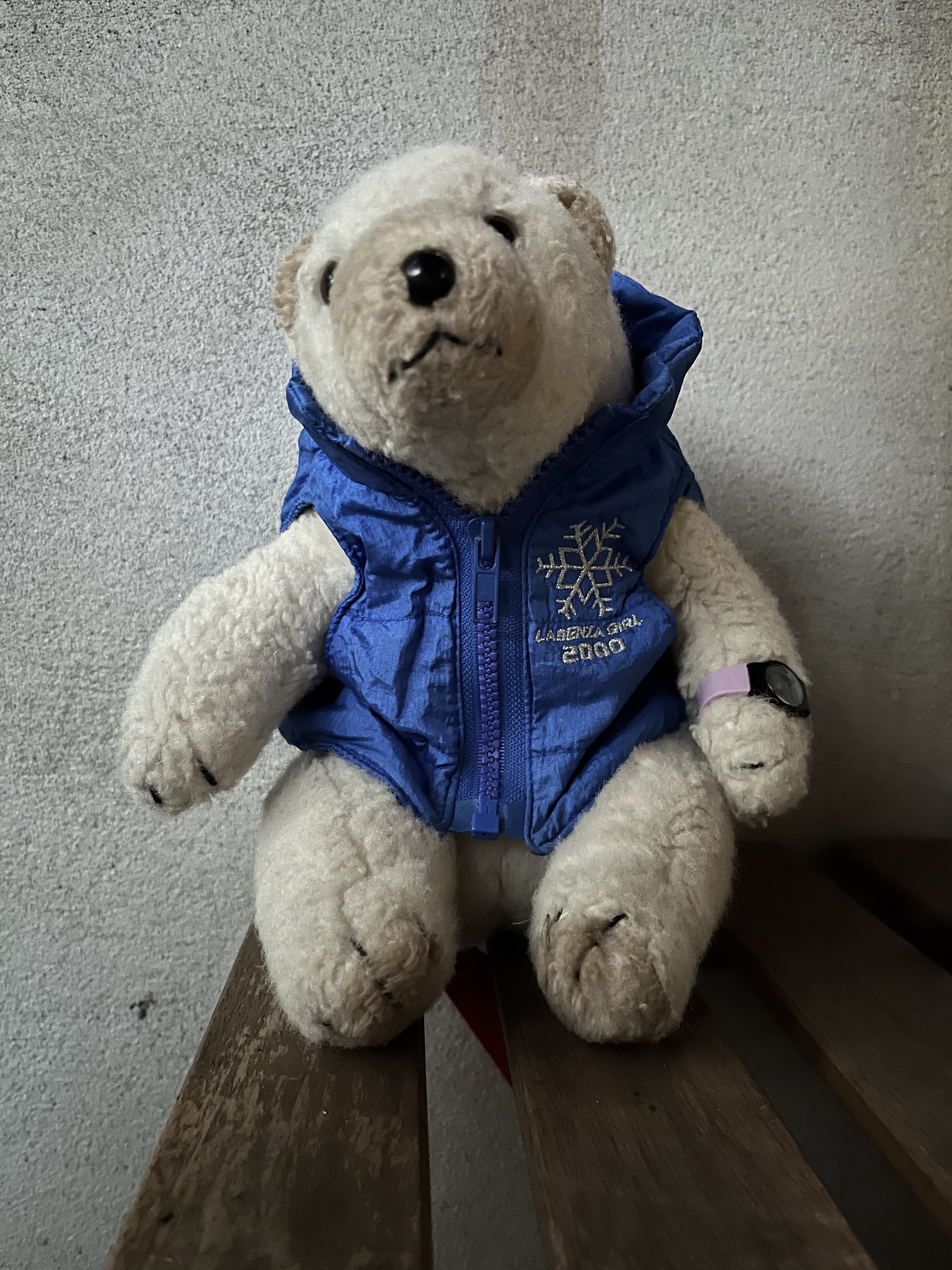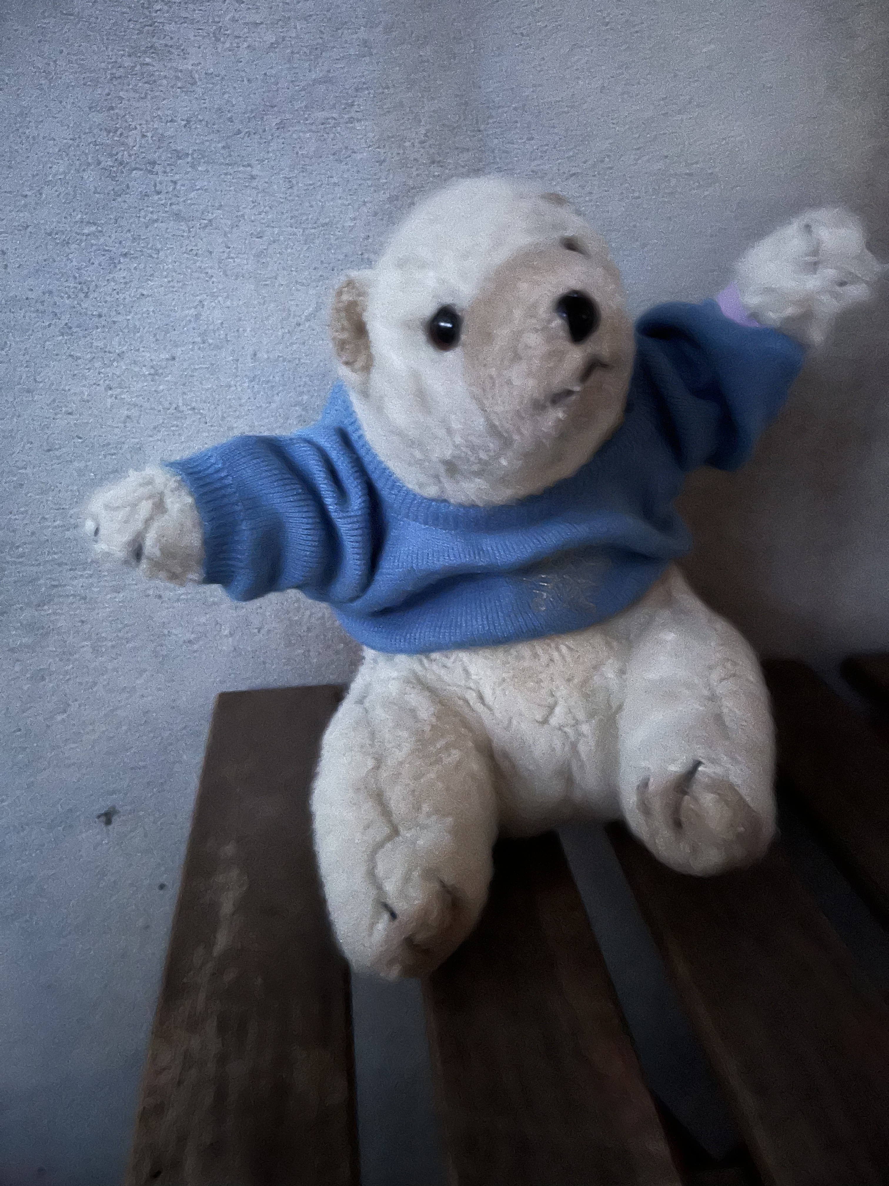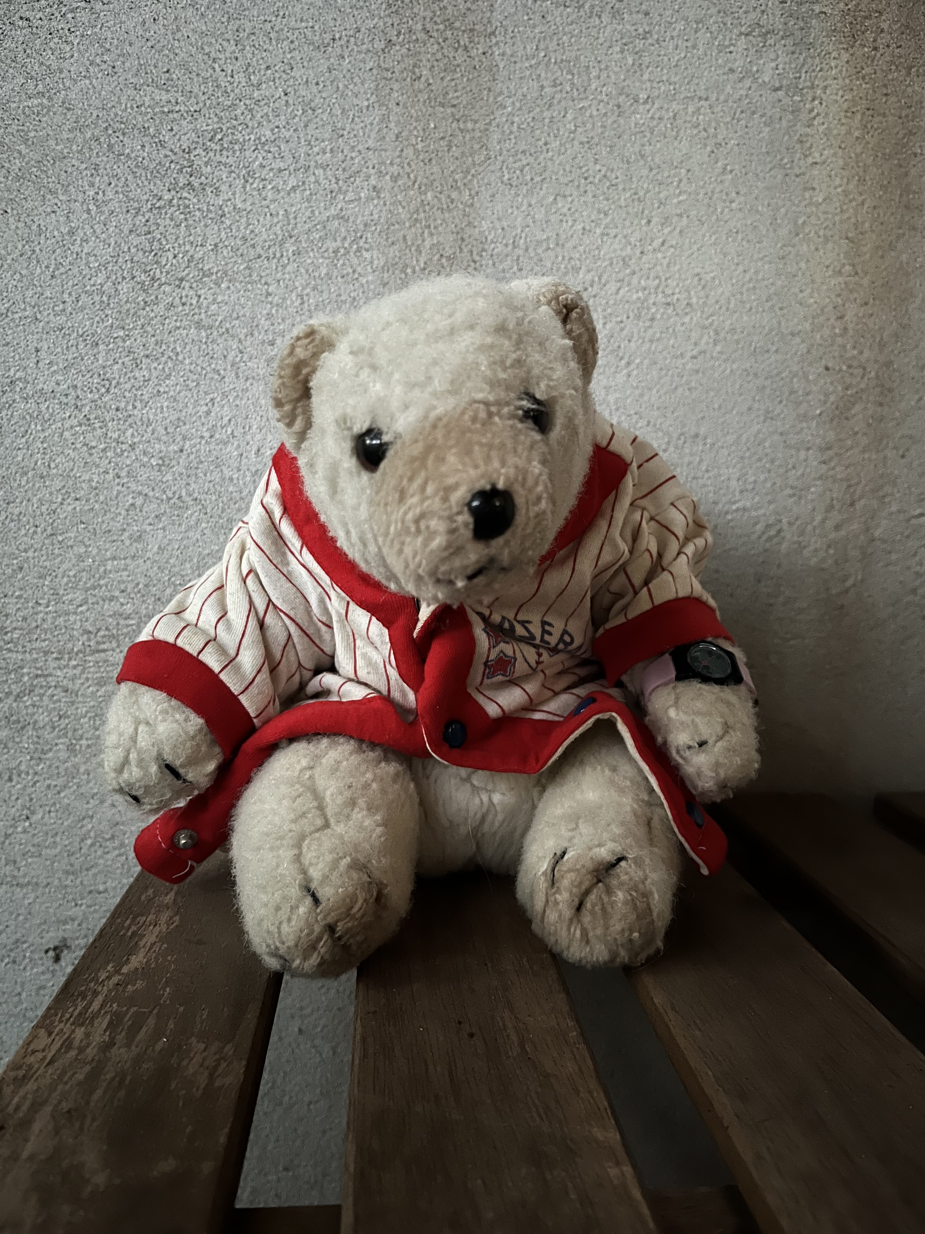 As mentioned in my previous post, I came across a box of doll clothes on the sidewalk. I used some to play dress up with my fashion dolls. But there were plenty of togs sized for plushies. So I styled Ossington Bear — our friend that went viral — in my finds.