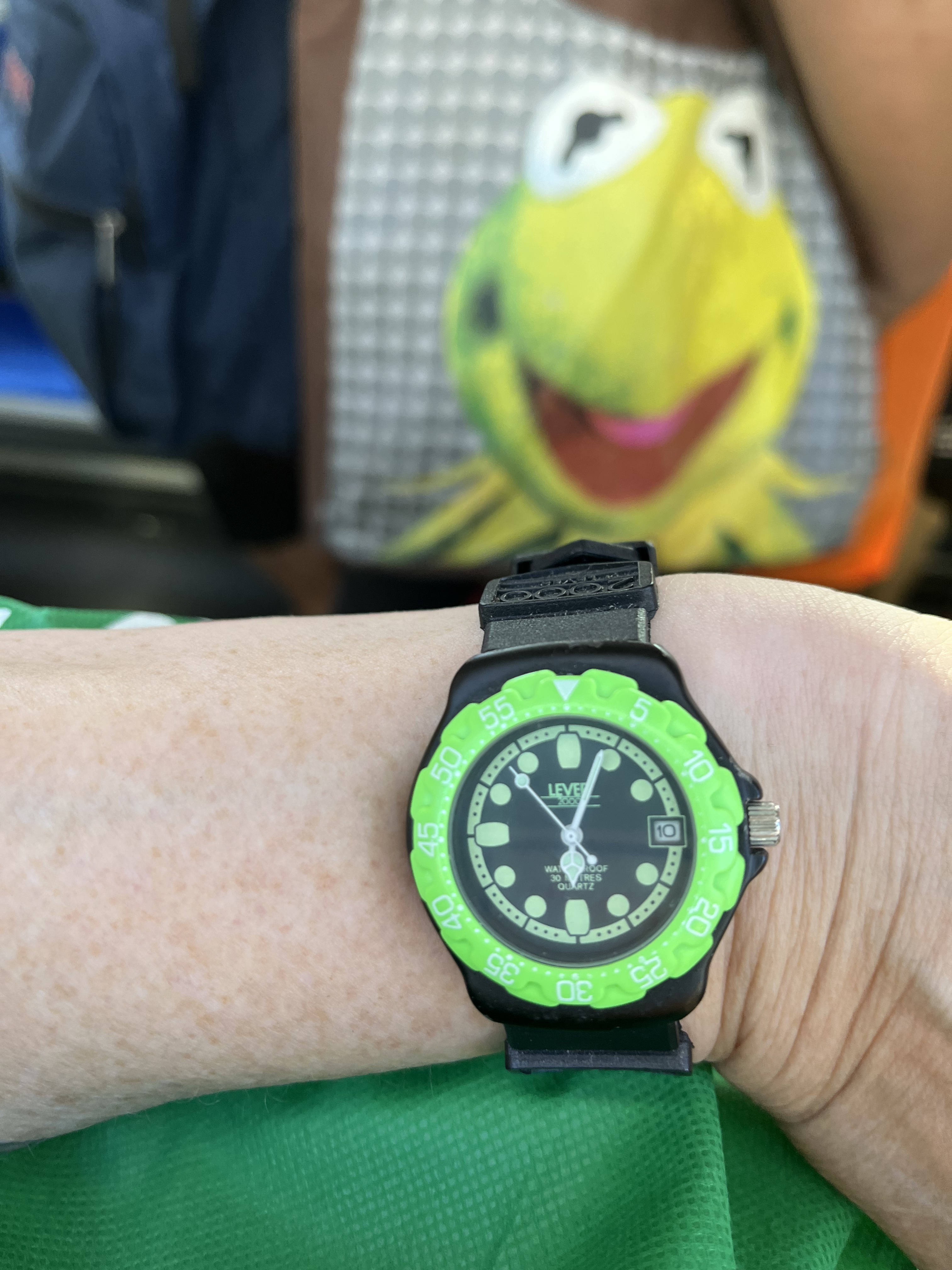 Another Value Village find. This is a promo watch for Lever 2000 soap. It’s also quite clearly an homage to the TAG Heuer F1. It’s quite a premium piece of swag. It has a sapphire crystal and everything (except for a bezel that turns). I bought it because I can’t resist merch for some reason and for its day-glo green accents.