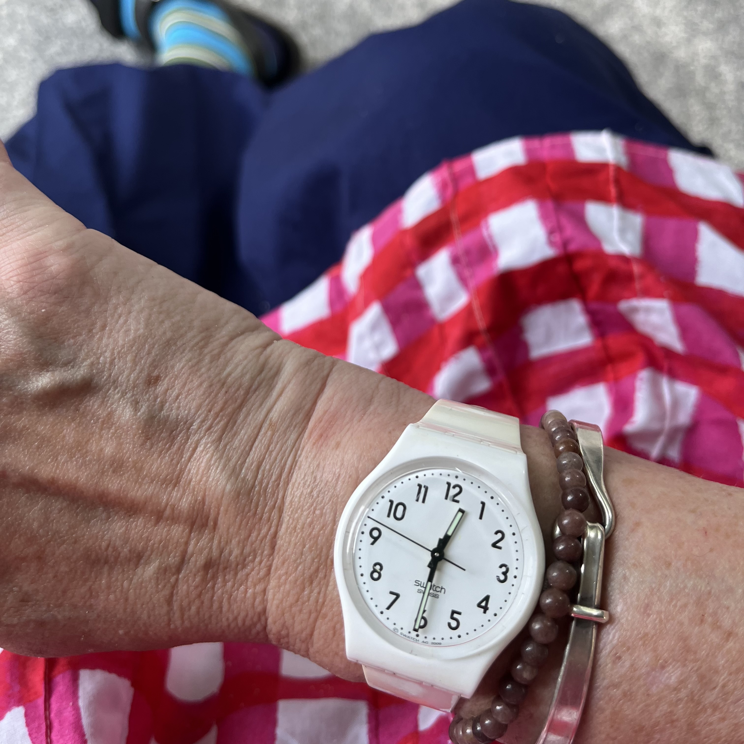 On Wednesday, I went to the Value Village where I bought a bag of watches. Most were busted fitness trackers but there was a lot of gold as well, including this white time only Swatch.