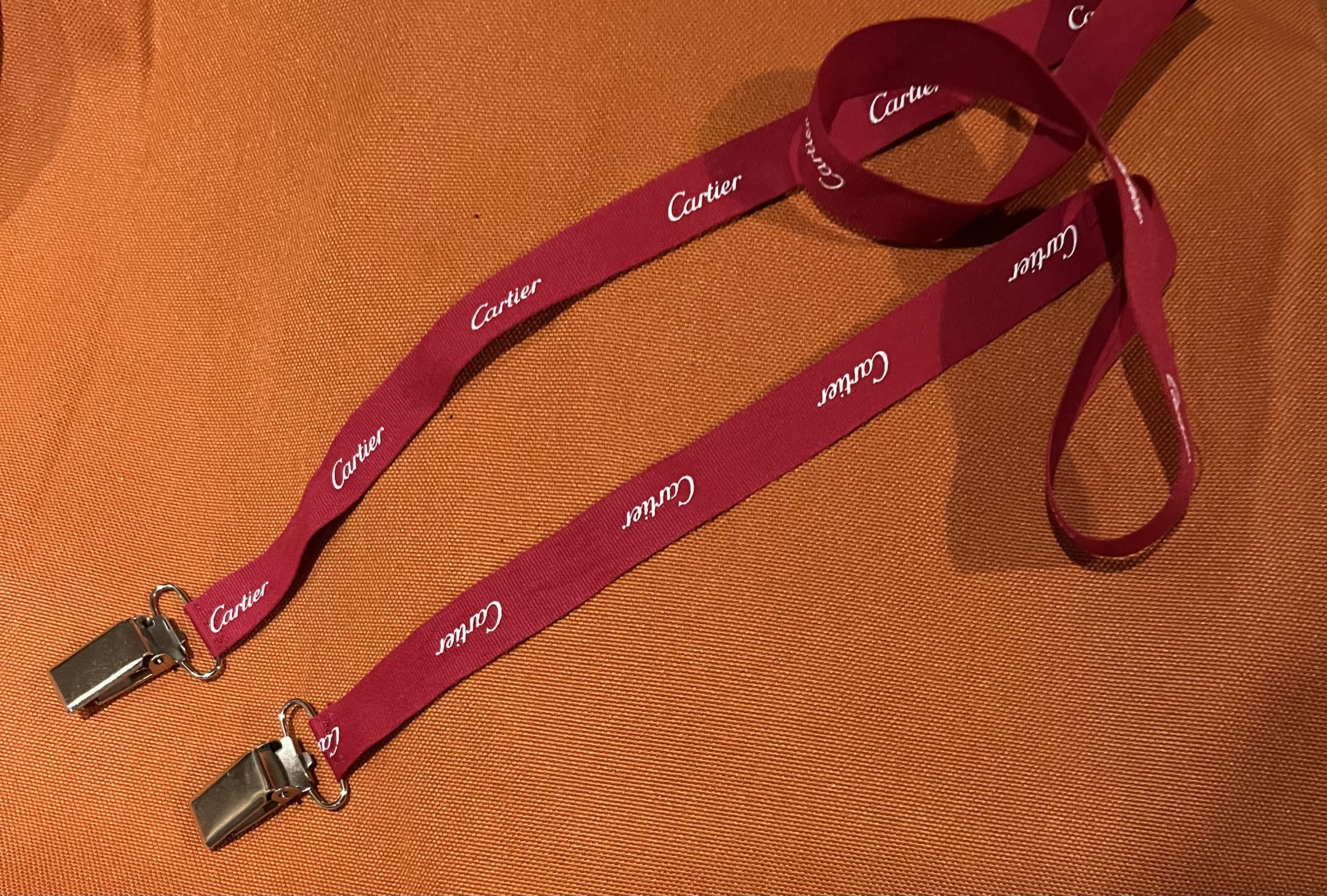Another notion I picked up at the variety store were these metal clips designed to be used as mitten holders. I attached them to some Cartier embossed ribbon that I got off a gift. My plan is to use this contraption to hold masks or napkins (to make an impromptu bib —I’m a messy eater).