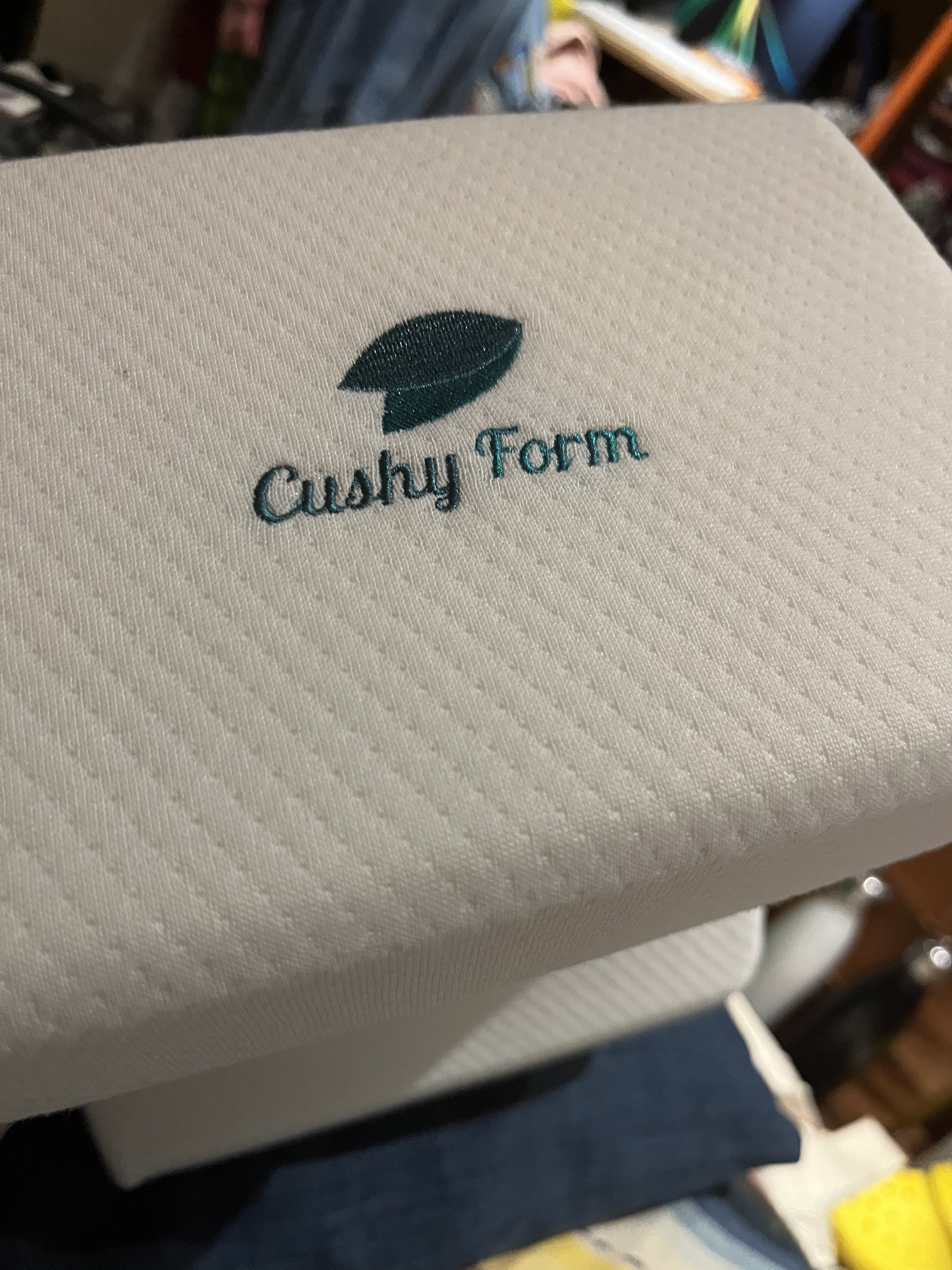 Whilst there I saw that they had memory foam knee pillows. I already have one but sometimes I also use it as a head pillow because it is shape gently cradles the neck. I bought two cotton tea towel to make a pillow case for it so I could display it on the couch.