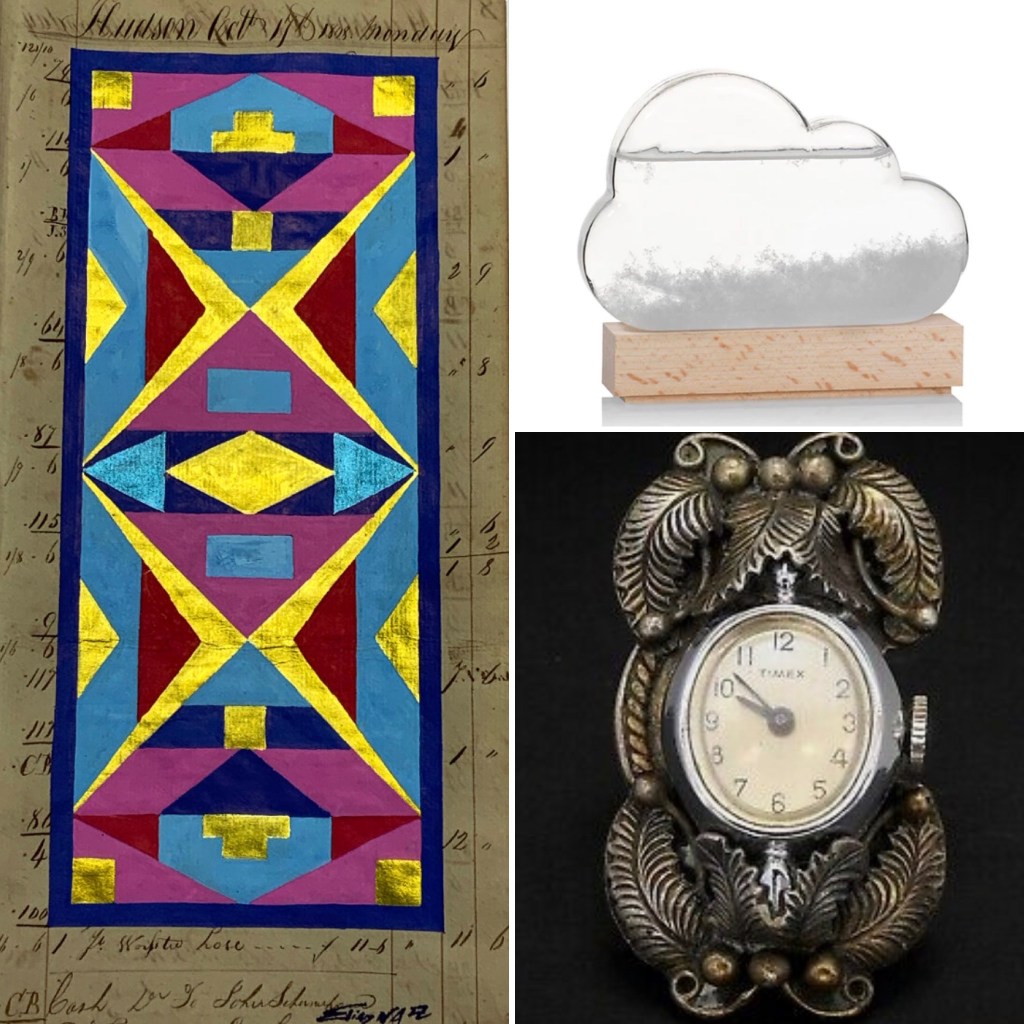 And last but not least, here are three more things that have caught my fancy: An Elias Jade Not Afraid ledger painting; Storm Cloud Weather Predictor; and a Southwestern Sterling Silver Ring Watch. I really want a ring watch. This one is on eBay.