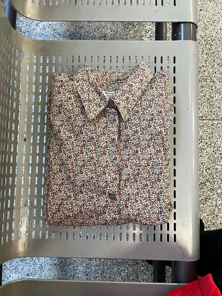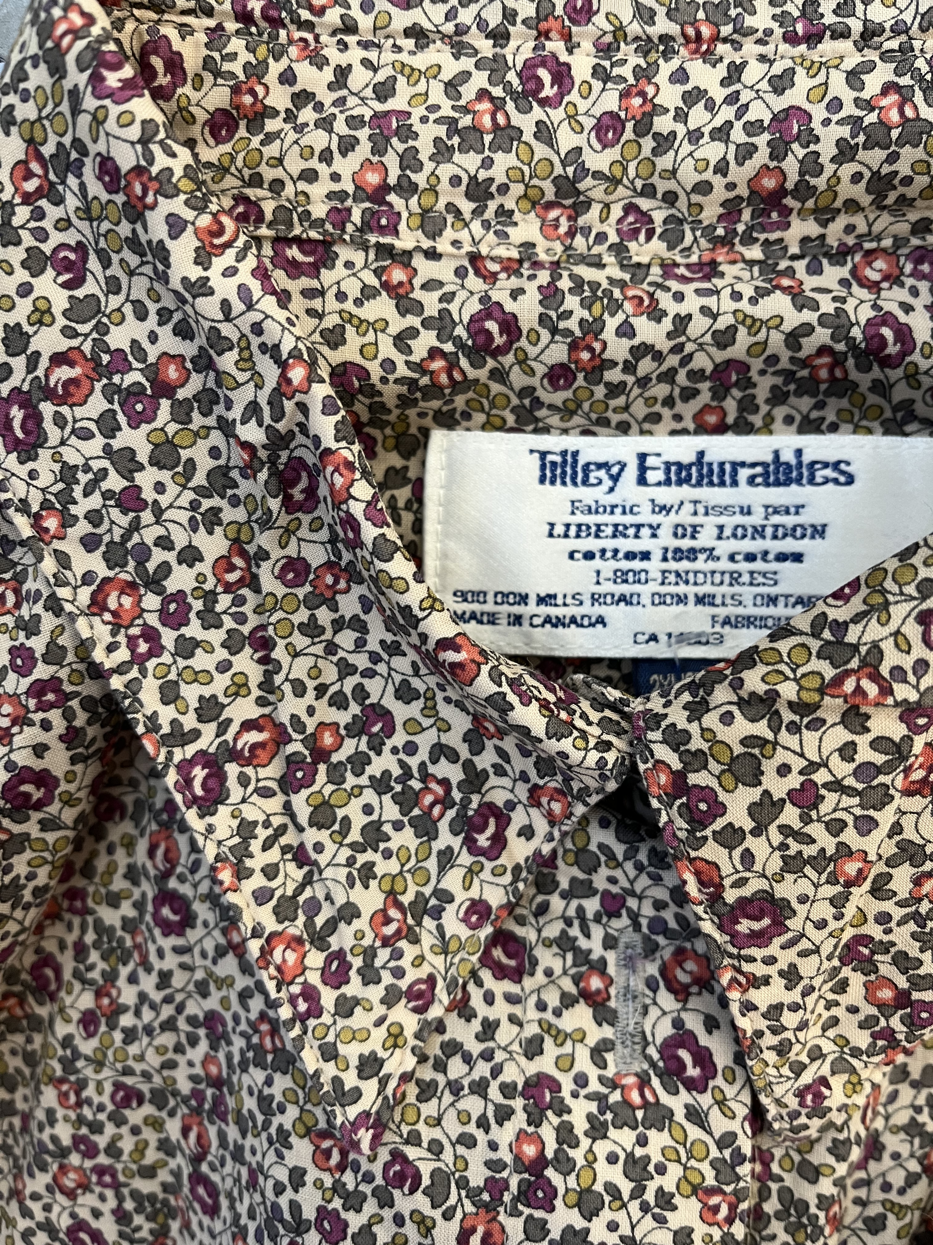 After my swap, I stopped off at the Value Village. Like my late Uncle Cocky, I have taken up shopping as a way to get my steps in during the winter. There were many amazing things that I did not buy. But I can never say no to certain labels and Tilley Endurables made with Liberty of London fabric is one of them.
