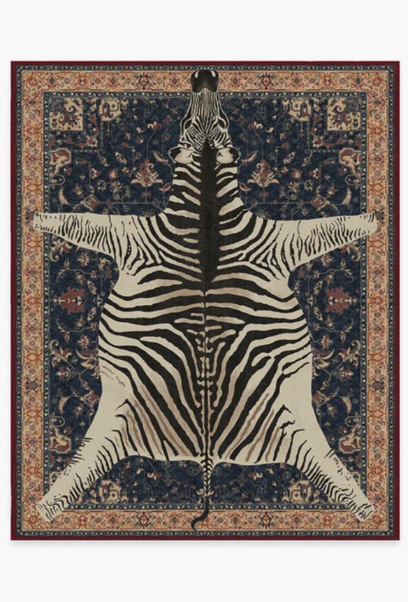 I then spent a bit of time researching rugs. The moths got at age old carpet so it’s going to the curb (hopefully someone who knows repairs or wants to upcycle it can use it). I saw that Iris Apfel has designed a collection for Ruggable and I fell in love with this witty zebra throw on a Persian carpet concept. Maybe I will just sell half of my art finance the purchase. Because rugs really do pull a room together.