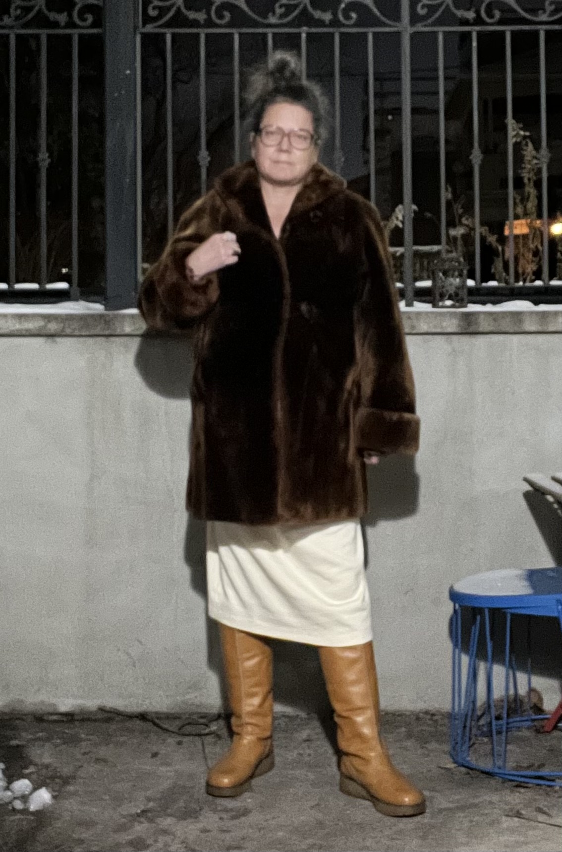 On the weekend I was complaining about my sweaty jacket syndrome and how the only time I had outerwear that kept my warm and dry was when I had a sheared beaver coat. I reminisced about aloud and at length: how because it was not composed of manmade materials, it could breathe, even when I switched from out of doors to indoor malls, I would not overheat. I’ve had other furs (my grandmother’s Persian lamb and a thrifted mink that I had restyled), but they lacked the beaver’s water resistance and plushness. I loved that coat so much but, alas, I gained a few kilograms and couldn’t fit into it anymore.