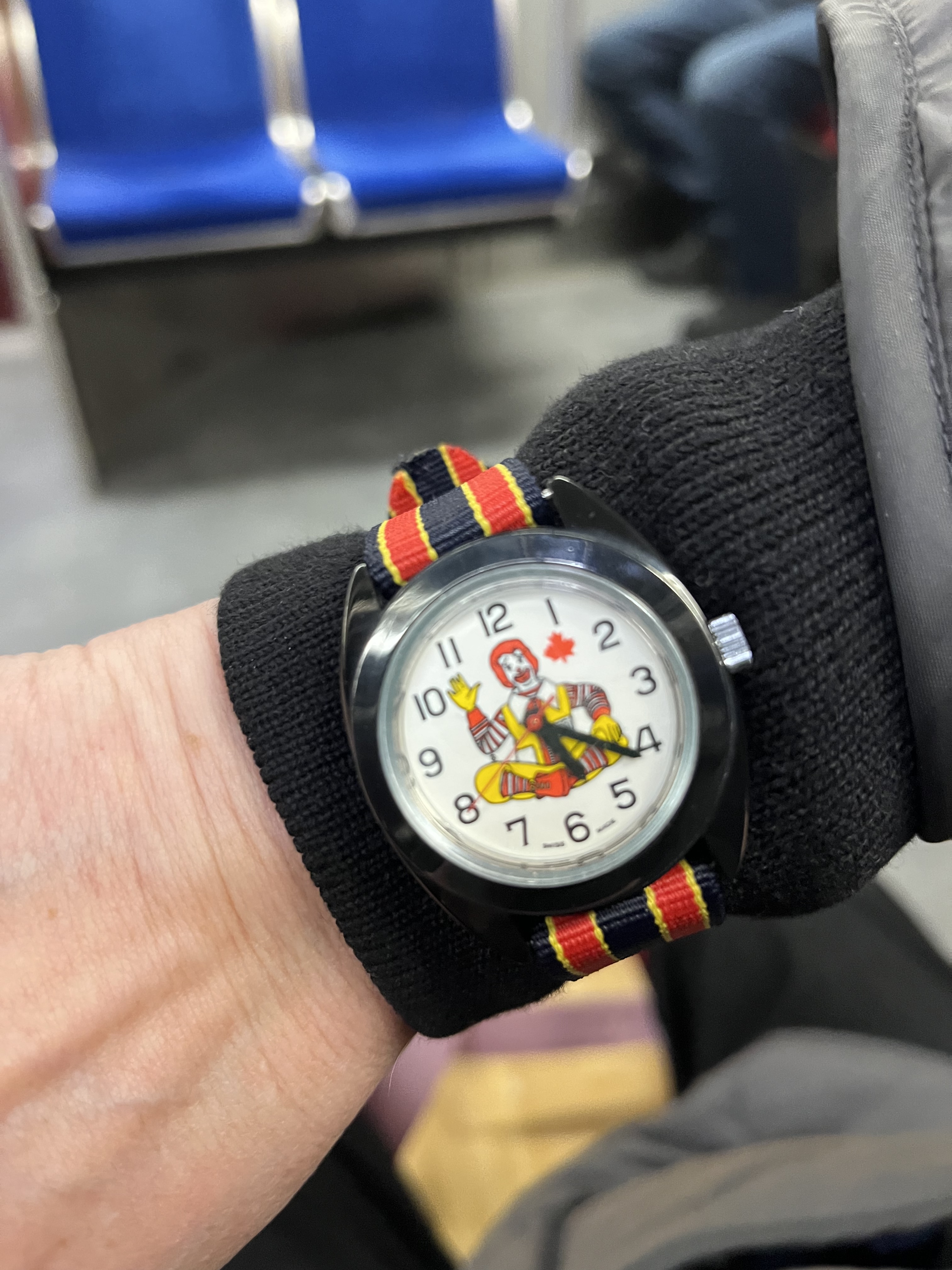 And the best find of all is this McDonald’s Canada character watch. It’s a Swiss made windup, probably from the 1970s, with it’s original strap (at least according to the internet). And it’s keeping excellent time ($15).