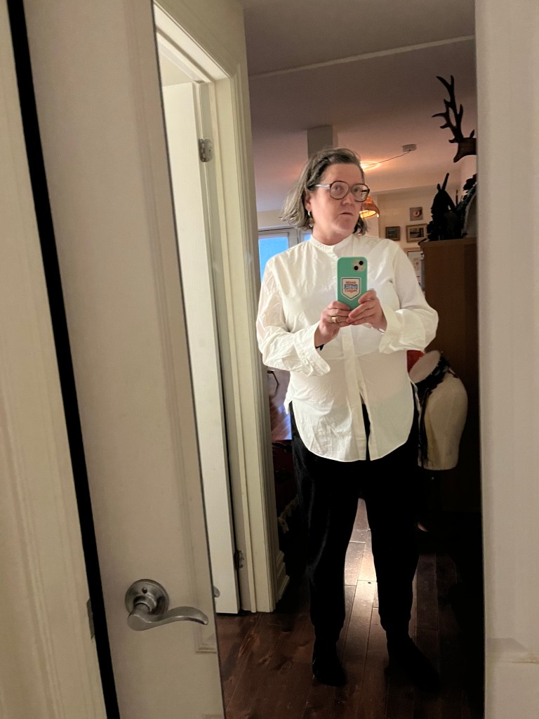 A classic minimalist Lemaire shirt. I feel like it needs to be paired with a miniskirt.