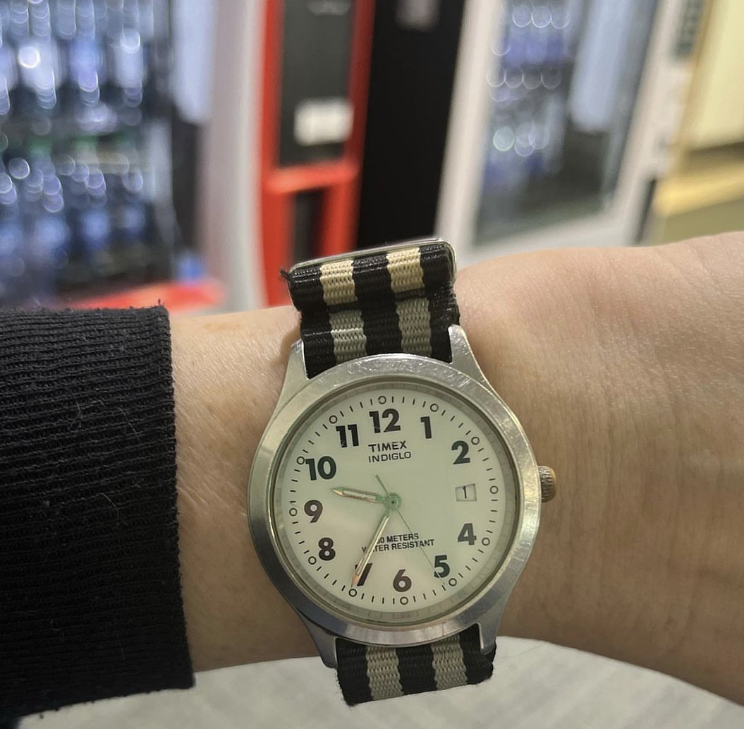 I also like the check out the Value Village for straps and bracelets. I was lucky to find what looked like a brand new NATO strap. It looks great with this Timex (a watch that I’m particularly obsessed with because I found it in a bag of broken jewelry about 10 years ago and I have never had to replace the battery.