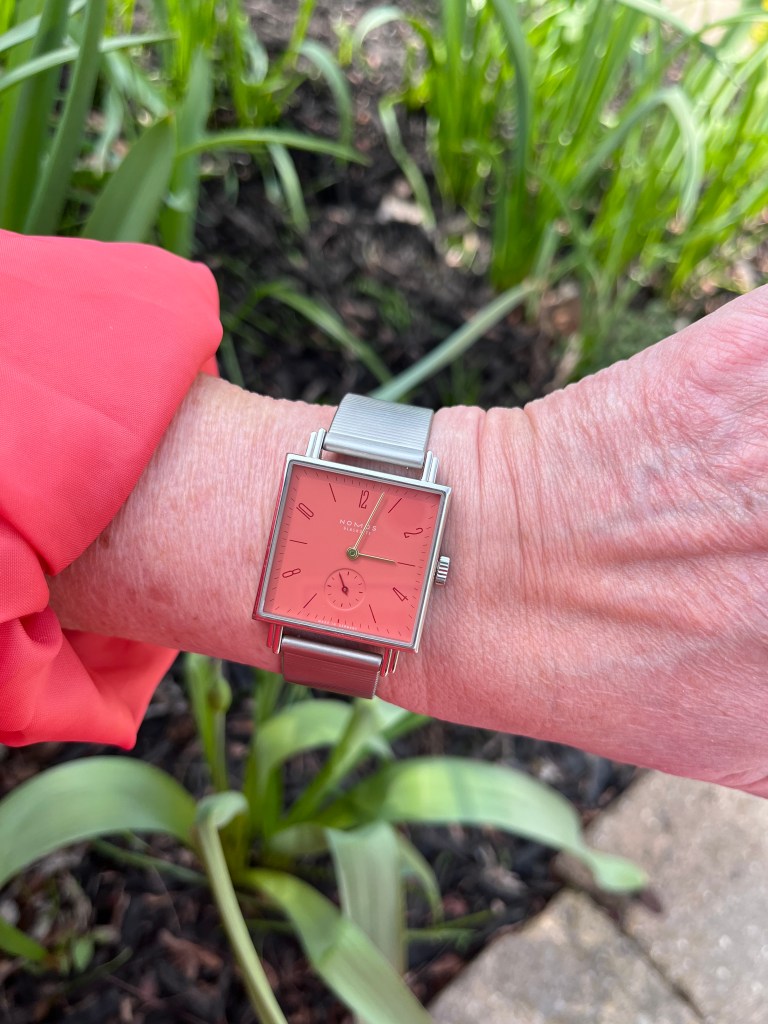 On the second day, we found ourselves with a spare half hour in Glashütte while we waited for our ride to take us back to Dresden. I did have a desire to visit the Nomos Glashütte boutique because I wanted to get a replacement strap for my Tetra. Generally it’s not cool to buy another brand’s merchandise while traveling on their dime, but I also couldn’t resist the opportunity. While the group was chilling, I snuck off and got the bracelet. And since I was there anyway, I also bought one of their sundial pendants (which I have wanted since I first saw one, coincidentally worn by someone I met on a GO trip to Berlin).