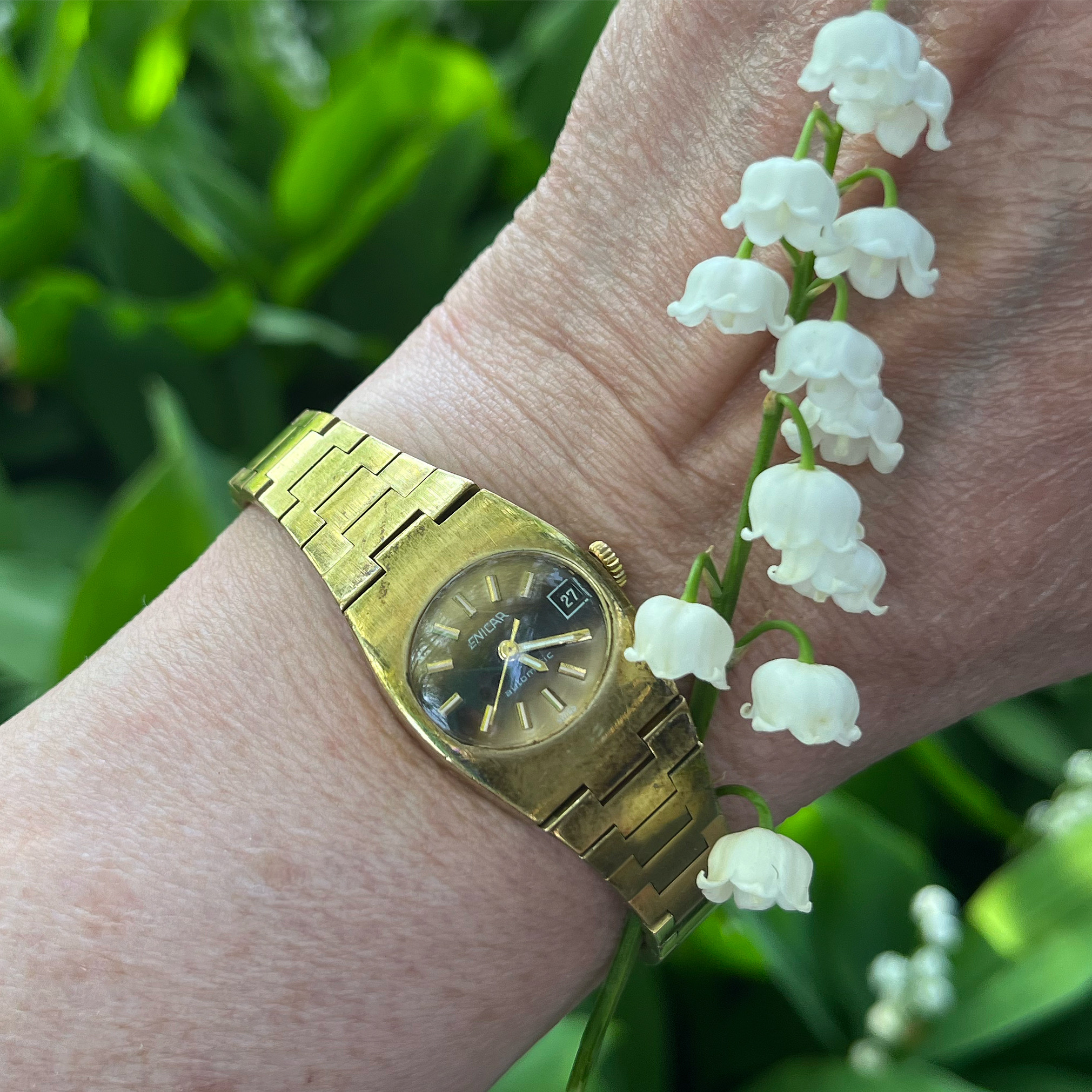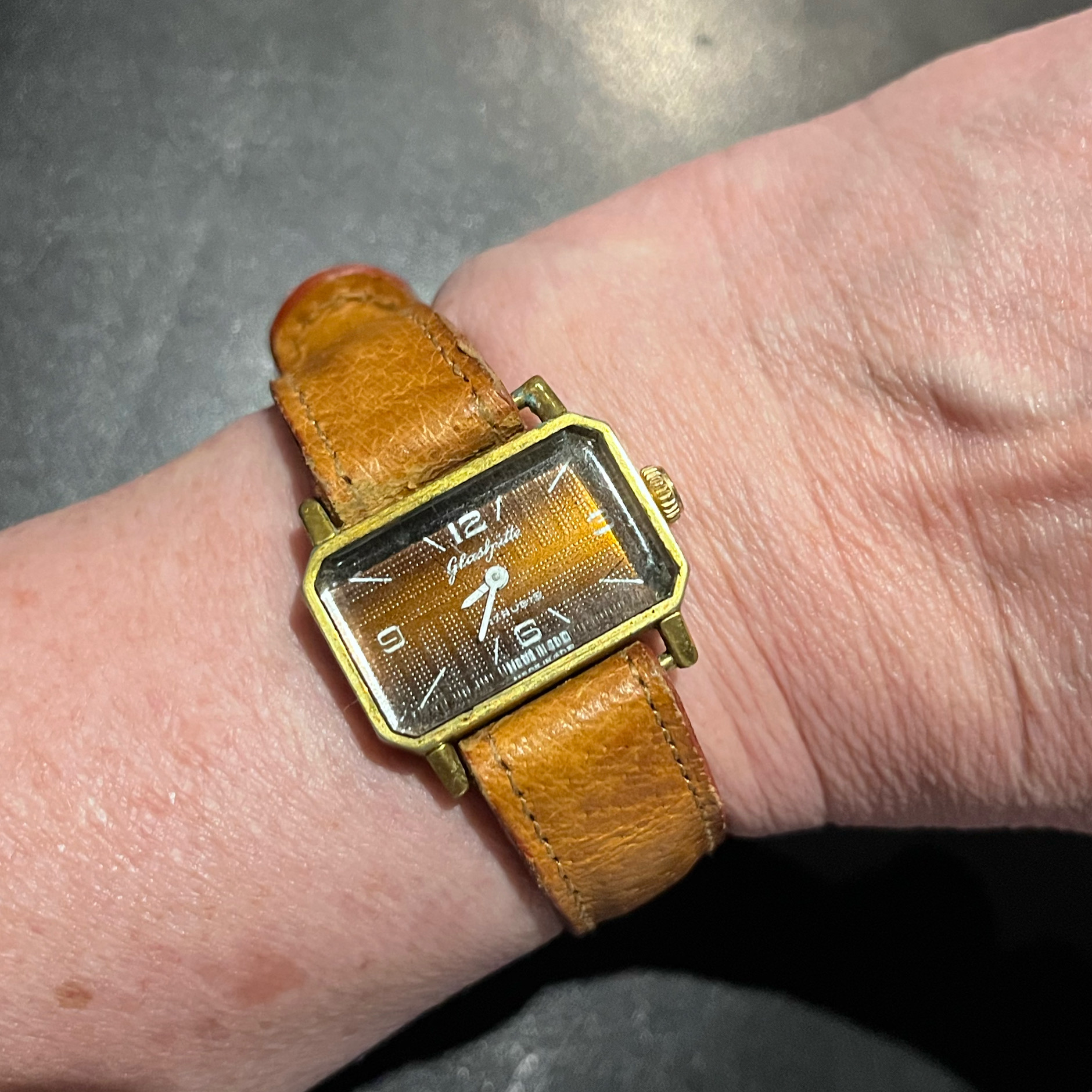 This automatic Enicar is also pretty impressive. Enicar is one of those brands that was once highly regarded in horology but didn’t survive the quartz crisis. Unfortunately it is running a little fast and the crown is wonky. But with its cat’s eye, ombré dial, and brassy finish, it encapsulates everything that I love about 1970s watches. I will make it live again!
