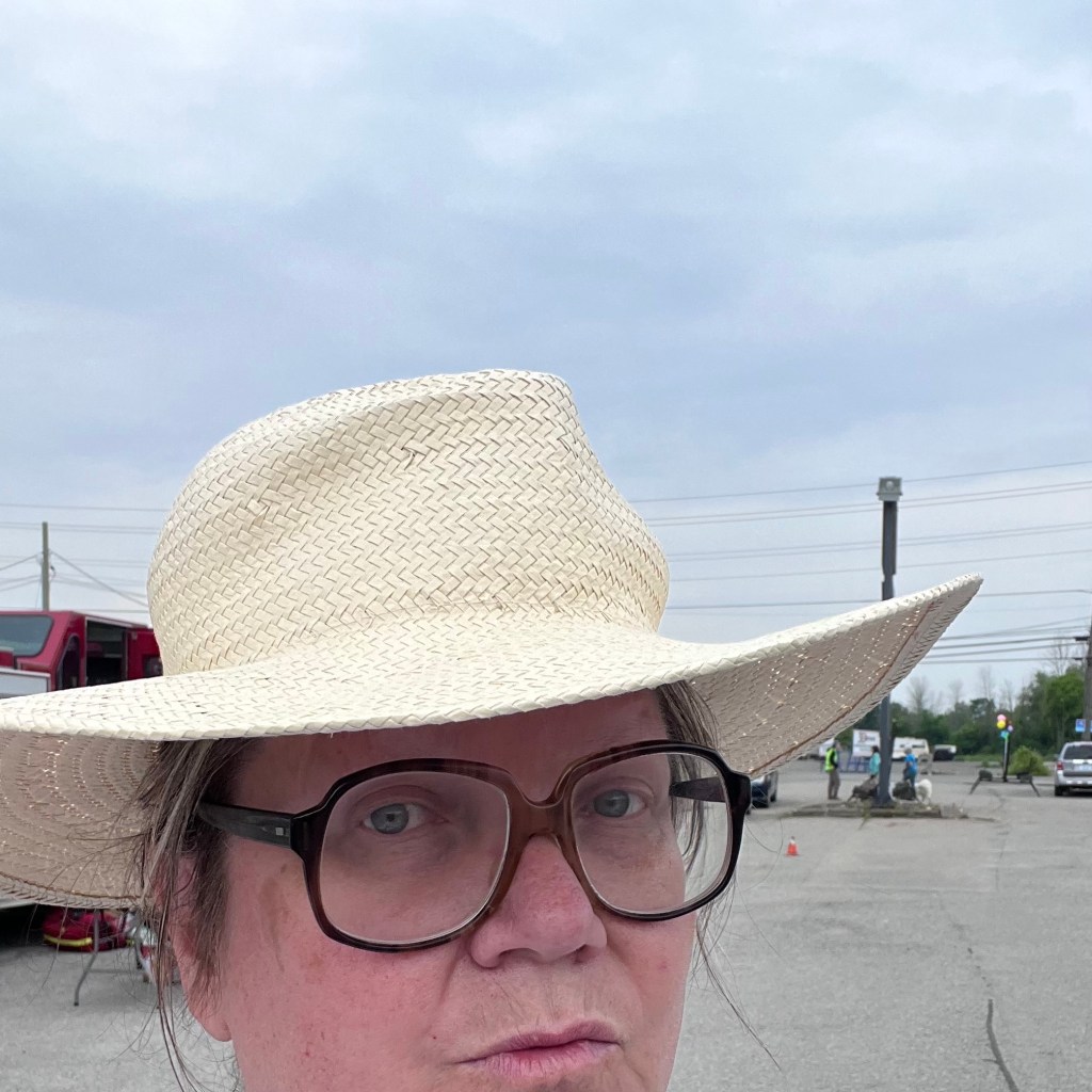 For the next six days we stayed home. Then we did a day trip to Brockville. Mr. Andrew’s mom started the local Habitat for Humanity chapter and, in honour of the local organization’s 25th Anniversary, they were unveiling a plaque in her honour. It was a lovely and touching event and the weather was hazy but warm and rain-free. Once again I was both over- and underdressed. I wore layers so I was able to ditch my jacket but I forgot a hat and the speeches were being held outside in the noon day sun. Luckily the ceremony was being held at the Habitat For Humanity Restore, where they had racks and racks of new old stock clothing and accessories. I picked up a Brixton sun hat (below) and, because everything was 25 percent off, I also purchased a zebra print Smash & Tess Tunic dress. All for a good cause.