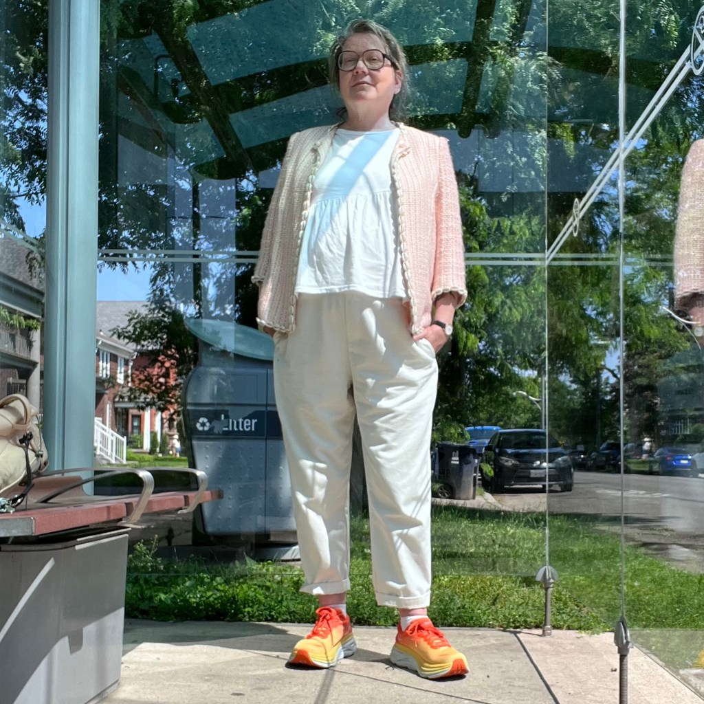 Hoka also happens to be a bit of an “it” shoe at the moment. The only problem with the moment is that I’m broke (such is the life of a freelancer — my clients don’t always pay their bills on time and I have a problem with buying celebrity dolls at the VV). I stopped by Winners to use the bathroom whilst walking home from a press party last Tuesday. One must walk past the shoe section on the way back to the loo and these orangey Hokas practically jumped off the shelf at me. They were 50 percent off the price advertised on the Running Room’s site. Still a little beyond my current budget so I paced around the store trying them on, putting them back on the shelf, walking away and then walking back. Eventually a voice came over the PA announcing that the store was closing in ten minutes so I panicked and bought them.