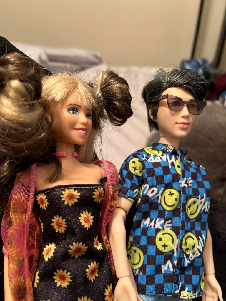 I also found a rare set of Ken clothes at the Dollarama so I thought he might like some new summer time fashions. Here he is hanging out with Miley Cyrus.