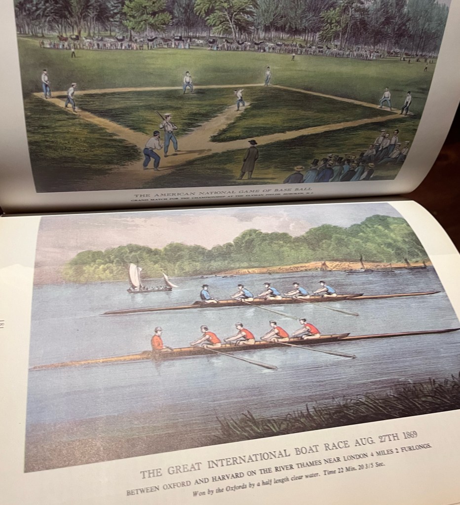 I was in Great Britain as a guest of Bremont to take in the Royal Henley regatta. It’s funny that when I got back to Toronto, I found this book of Currier & Ives illustrations in a box on the sidewalk and the first page I turned to had an etching of rowing crew from Harvard and Oxford competing in a race on the Thames. So I felt compelled to bring it home.