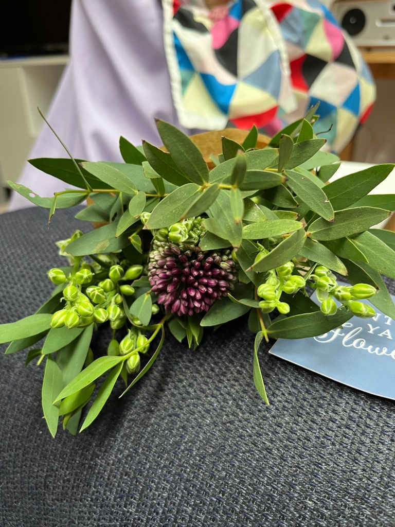 My in-laws like in a suburb called Teddington. When I was out exploring its many charity shops, I came across this bouquet. It had a note tied around it that said they were free for the taking and they were meant to bring a smile to the finder’s face. It worked.