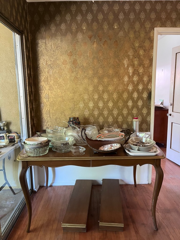 The story was that the house had belonged to Walter and Nina Kurtz. He was an American GI stationed in Italy where he met Nina and brought her to America. They originally lived in Chicago where their sons Wayne and Pee Wee were born. The family eventually came to California and the little house in West Hollywood. It seemed to be mostly Nina’s house. The neighbors who were helping out with the sale said she was very proud of the place. Based on the objects on sale, she was very stylish as well.