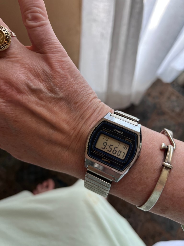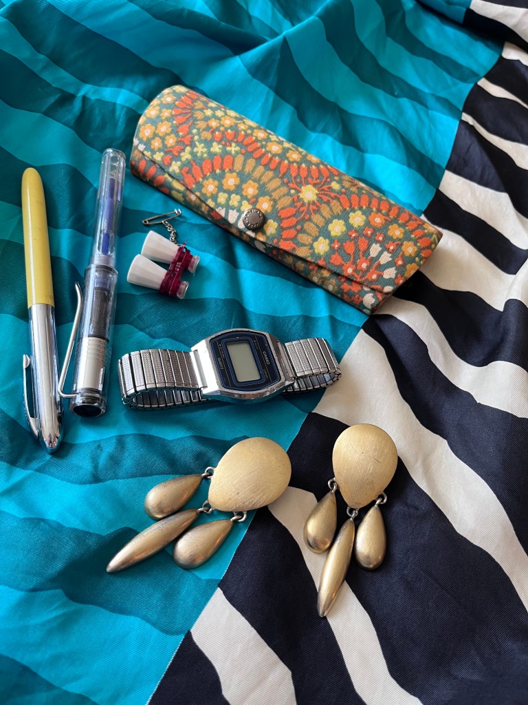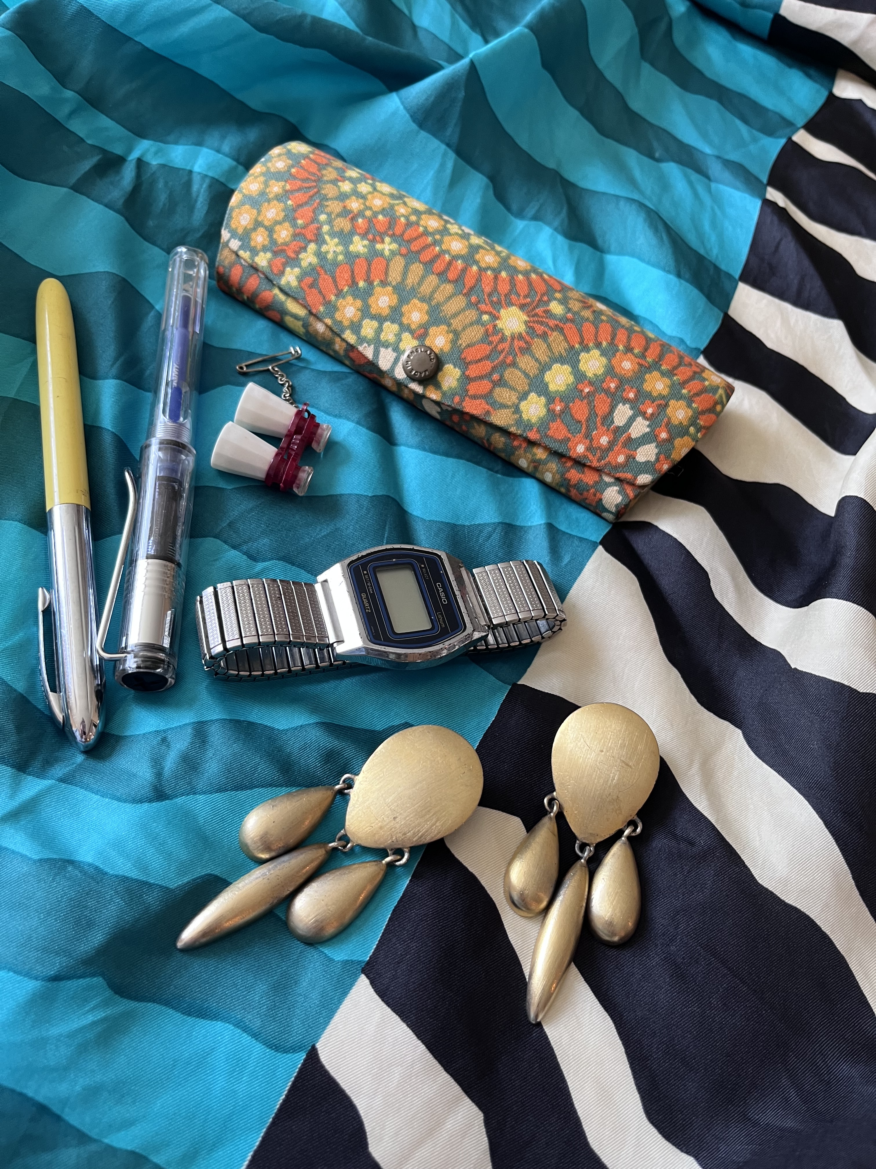 I had to bring a part of this story home with me so I bought a vintage silk Jacqmar zebra-print scarf, two pairs of dangly earrings, a miniature Stanhope showing Pope Pious and the Vatican, two fountain pens, a cool eyeglasses case and a 1980s Casio watch. I then spent the next two days looking for a place that sold watch batteries so I could see if it still worked. It did!