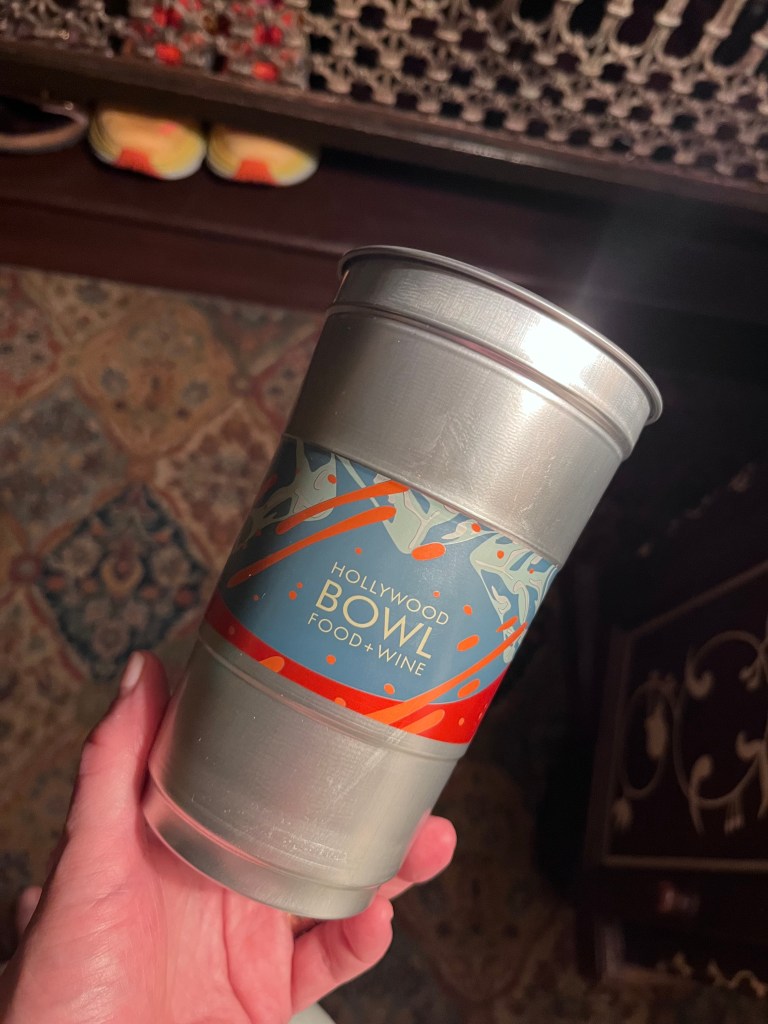 When we went to see They Might Be Giants and Sparks at the Hollywood Bowl, drinks were served in these reusable aluminum souvenir tumblers.