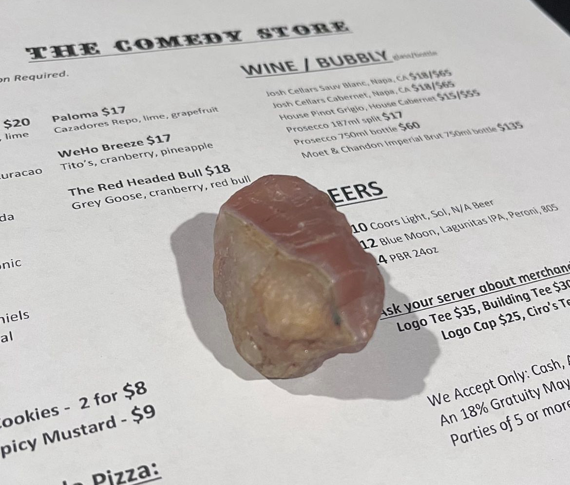 Oh! I almost forgot the best souvenir of all! I found this amazing rock in a parking lot near the Comedy Store on Sunset Boulevard. I think it’s chert. It fits nicely in the palm and I’ve been carrying it with me everywhere!