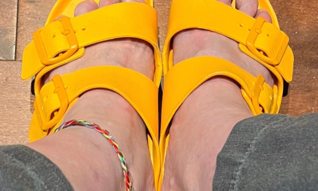 Apologies for the pause in posting. It was very hot and I was very broke so I mostly stayed parked inside in front of the fan, working hard to make money. I did, on occasion, leave the house for ambles to get some exercise. I went to one yard sale up the street last Sunday where I got these Birkenstock EVA Arizona’s for five dollars.