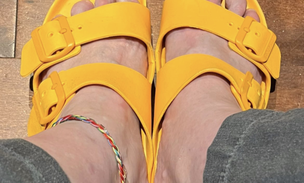Apologies for the pause in posting. It was very hot and I was very broke so I mostly stayed parked inside in front of the fan, working hard to make money. I did, on occasion, leave the house for ambles to get some exercise. I went to one yard sale up the street last Sunday where I got these Birkenstock EVA Arizona’s for five dollars.