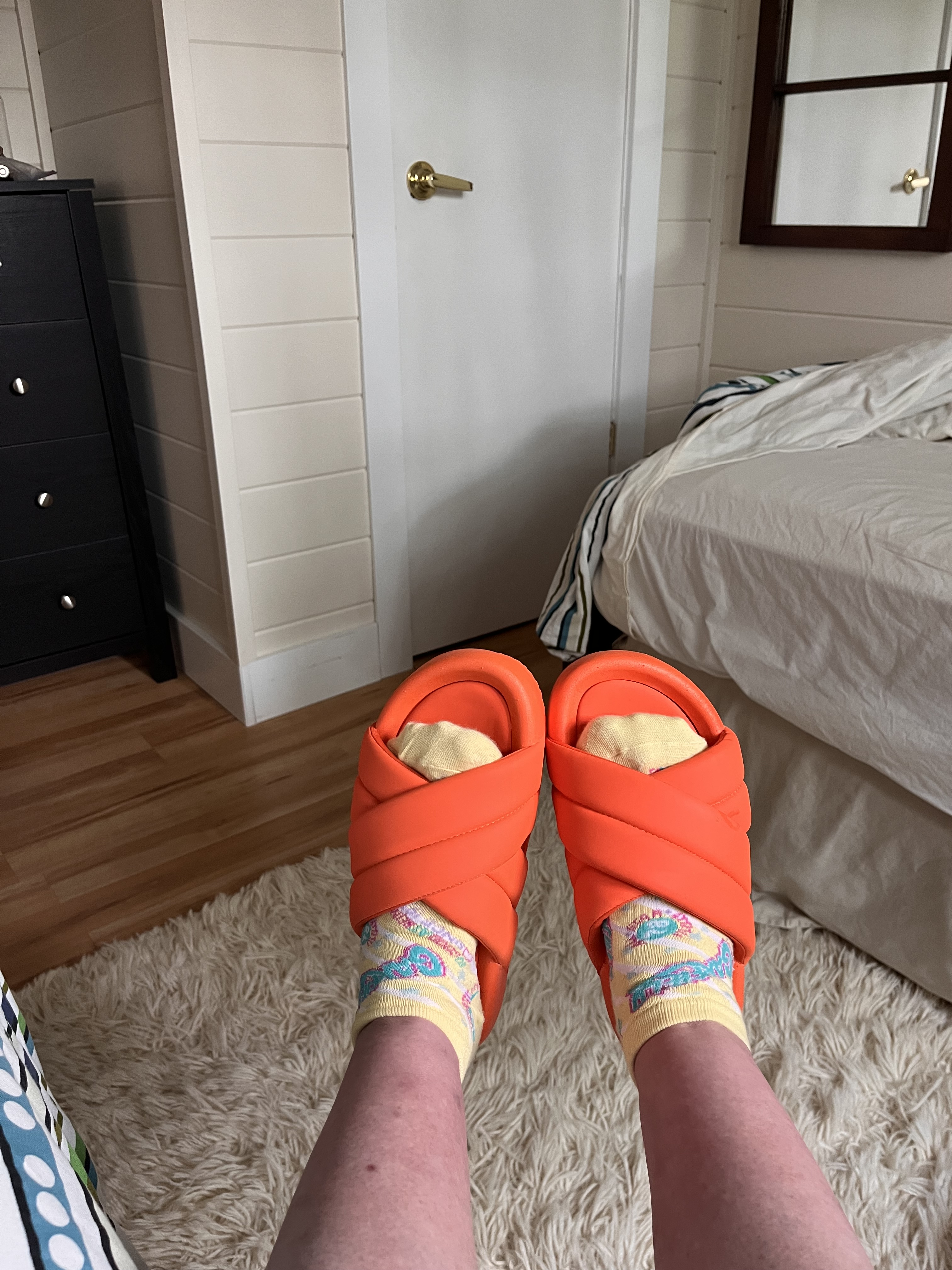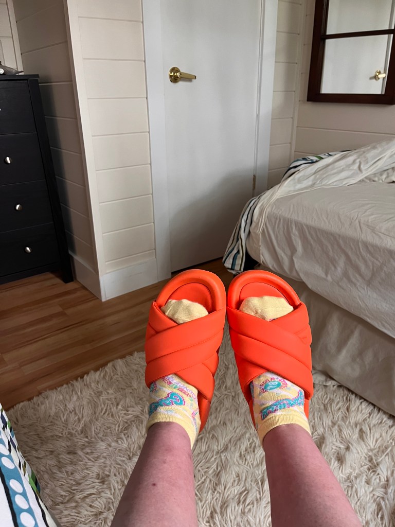 I also got some treats for my feets. I purchased these slippers because I forget to pack house shoes for our cottage times. And I couldn’t find my water shoes so I added thhis pink pair to my burgeoning footwear stockpile.