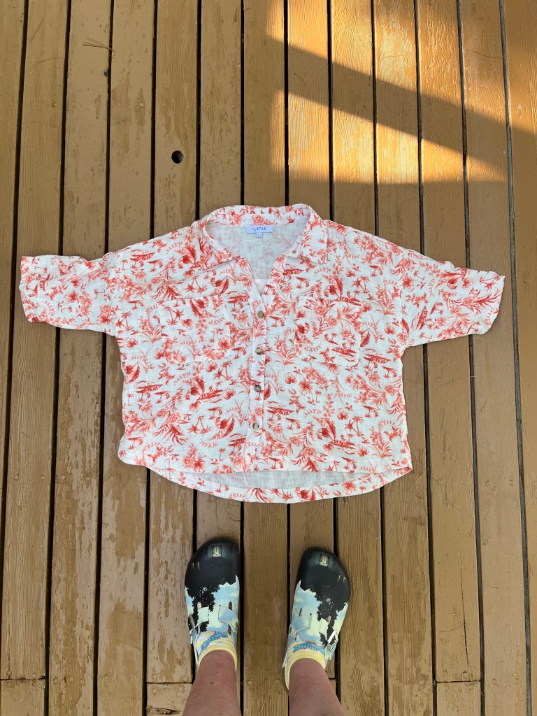 I’ve been looking for a camp shirt all summer so even though fall is just around the corner, I had to get this gauzy print top just because I had already invested so much mental energy in hunting one down. Plus, it was on sale.