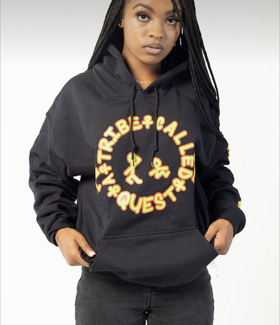 Or I can layer it with this Tribe Called Quesr hoodie that had been marked down to $7. (Later in the week, a guy offered to pay me $20 for it. Not for sale, Mister).