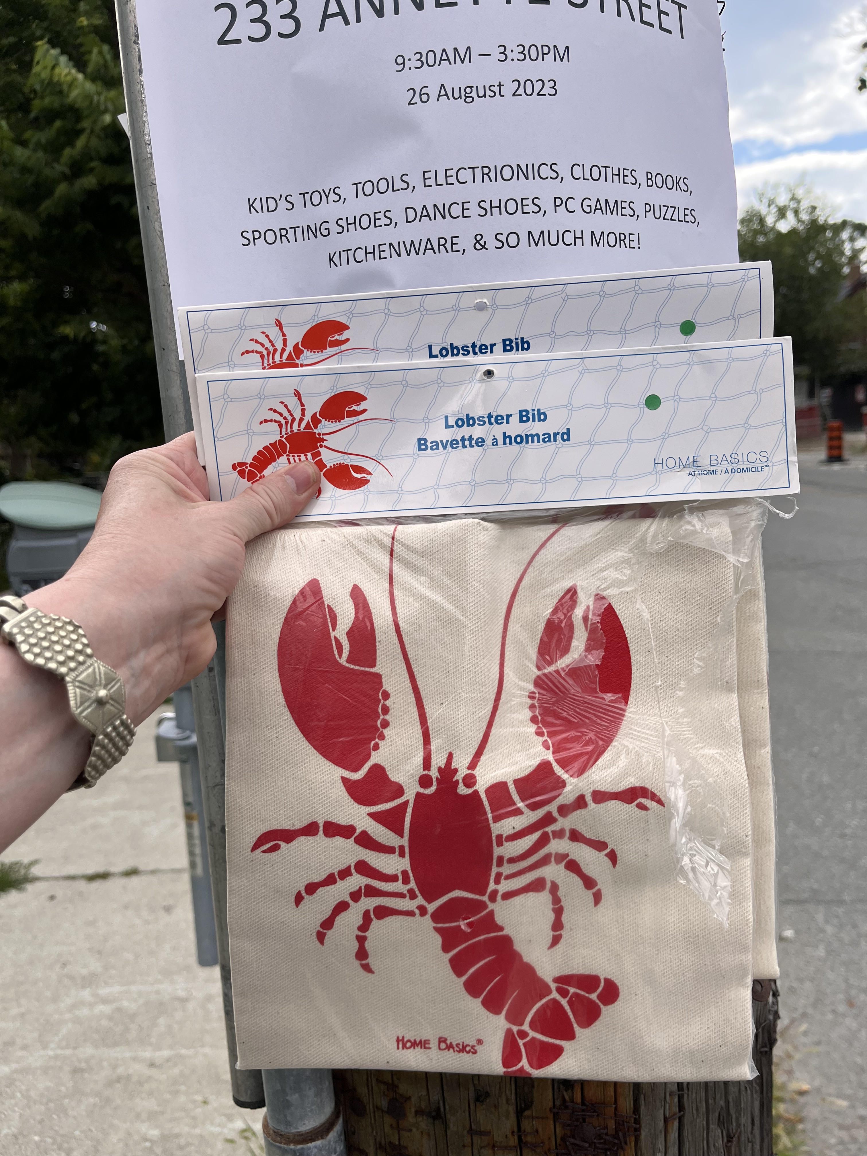 The next yard sales didn’t result in museum quality finds, but there were still things that tickled my fancy, such as this Rajasthani Bangle. For an extra fifty cents, I also purchased some linen lobster bibs. I don’t eat lobster but I am sometimes a messy eater and I also liked the graphic.