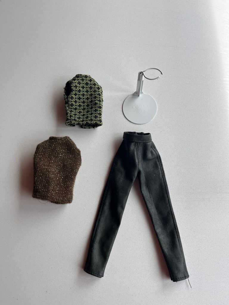 What looks like homemade Barbie clothes and small doll stands. I will use the stands for posing my Mini Blythes. I already dressed Posh Spice in the lurex and leather.