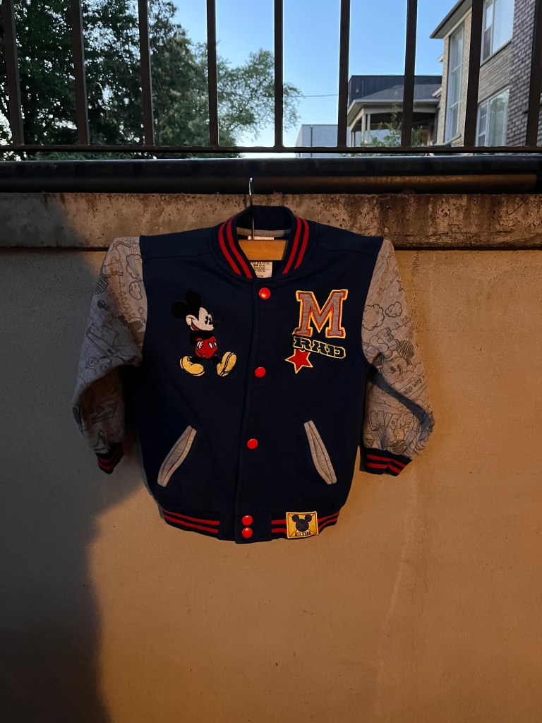 A child-sized Mickey Mouse varsity jacket. I will ask my grand-nieces are interested. If not I will endeavour to invent some sort of shrinking potion so I can wear it.