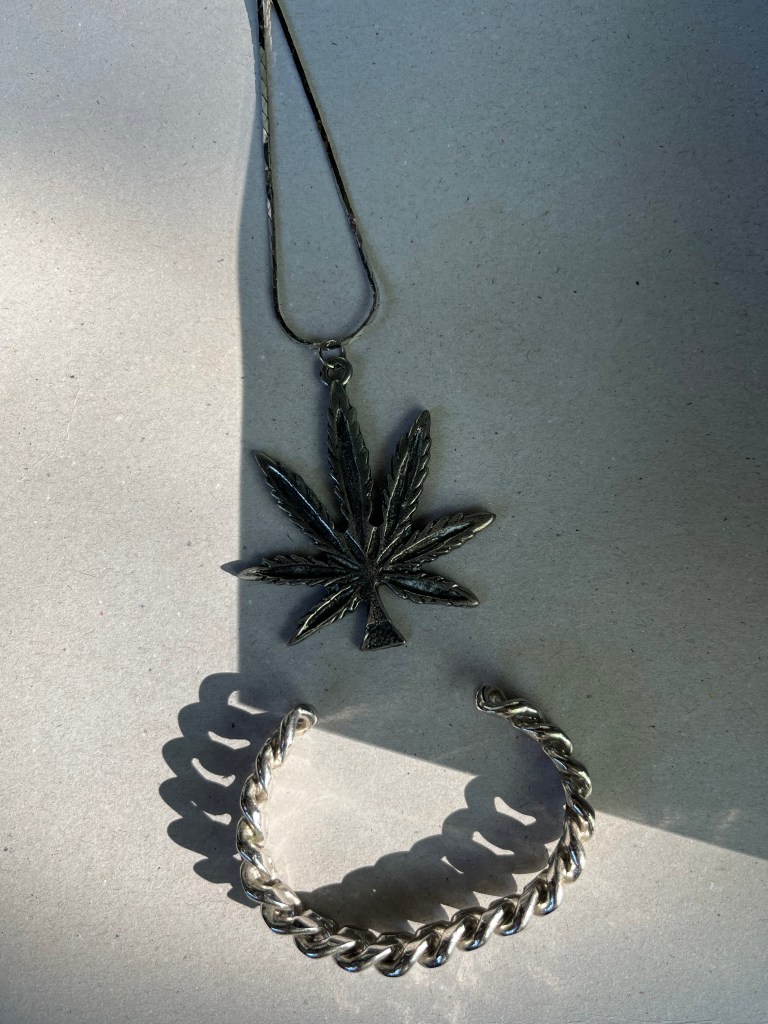 Or how about this pot leaf pendant and silvertone chain cuff. Stanley told me he bought the shop 58 years ago and most of the jewelry was already there then. I think his math may be off a bit because these pieces feel super seventies.