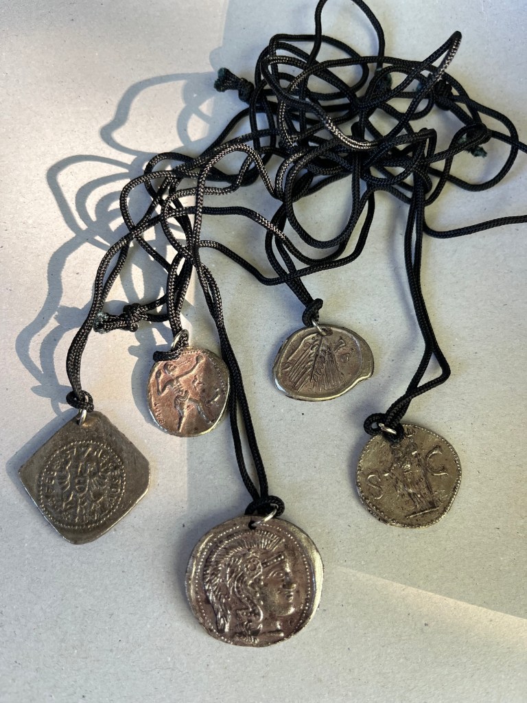 I can’t believe I overlooked these gems in my previous visits. I may go back again tomorrow to buy more of these fake ancient count pendants. I have an idea for making a necklace featuring all of these tokens. Wish me luck!